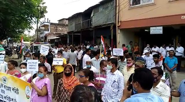 শাসনাধিস্ত বিজেপি চৰকাৰৰ কৃষি বিলৰ বিৰোধিতা কৰি কংগ্ৰেছ দলে অব্যাহত ৰাখিছে প্ৰতিবাদ। শনিবাৰে পুনৰ এই বিলখনৰ বিৰোধিতা কৰি শিৱসাগৰ জিলা কংগ্ৰেছে উত্তাল প্ৰতিবাদ সাব্যস্ত কৰে। শিৱসাগৰ জিলা কংগ্ৰেছৰ কার্যলায় ৰাজীৱ ভৱনৰ পৰা এক প্ৰতিবাদী সমদল উলিয়াই শিৱসাগৰ চহৰৰ মূল পথ সমুহ পৰিভ্ৰমণ কৰি পুণৰ ৰাজীৱ ভৱনৰ সন্মুখত উপস্থিত হৈ কংগ্ৰেছ দলৰ নেতা-কর্মী সকলে এখন প্ৰতিবাদী সভা অনুষ্ঠিত কৰে। কংগ্ৰেছৰ প্ৰতিবাদকাৰী সকলে বিজেপি চৰকাৰ হায় হায়, নৰেন্দ্ৰ মোডী মুৰ্দাবাদ, কৃষক বিৰোধী বিল বাতিল কৰক ধ্বনীৰে উত্তাল কৰি তুলে ৰাজপথ৷ ইফালে প্ৰতিবাদকাৰীসকলে এচ আই কেলেংকাৰীৰ সন্দৰ্ভদ চলাই থকা তদন্তক ভেকোভাওনা আখ্যা দিয়ে৷ কেলংকাৰীত নাম উচ্চাৰিত অসম মন্ত্ৰী সভাৰ বিয়াগোম মন্ত্ৰী, নেতা, আমোলাক ৰেহাই দি পুঠি-খলিহনাতেই তদন্ত অন্ত পেলোৱাৰ গভীৰ ষড়যন্ত্ৰ চৰকাৰখনে ৰচনা কৰা বুলি অভিযোগ কৰে প্ৰতিবাদকাৰী সকলে৷