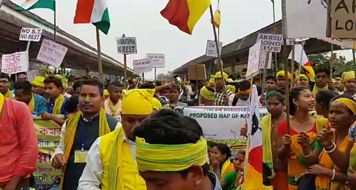 কোকৰাঝাৰ, সংবাদ ৩৬৫, ৩০ মাৰ্চ: পৃথক কমতাপুৰ ৰাজ্য পুনৰগঠন আৰু কোচ ৰাজবংশী জনগোষ্ঠীৰ জনজাতি কৰণৰ দাবীত আক্ৰাছুৱে শুক্ৰবাৰে পুৱা ৫ বজাৰ পৰা কোকৰাঝাৰ ৰে’ল ষ্টেচনত ৰূপায়ন কৰা ১২ঘন্টীয়া ৰে’লপথ অবৰোধ কাৰ্যসূচীৰ ফলত উত্তৰ পূবৰ সৈতে বহি: ৰাজ্যৰ যোগাযোগ বিছিন্ন হৈ পৰাৰ লগতে ৰাজ্যখনৰ বিভিন্ন ৰে’ল ষ্টেচনত আৱদ্ধ হৈ পৰে অসংখ্য ৰে’লযাত্ৰী। সংগঠনটোৰ নেতা কৰ্মীৰ লগতে সহশ্ৰাধিক কোচ ৰাজবংশী ৰাইজে অংশগ্ৰহণ কৰা ৰে’লপথ অৱৰোধ কাৰ্যসূচীত ন’এছ টি ন’ৰেষ্ট, আমাৰ দাবী মানিব লাগিব শ্লোগানেৰে প্ৰতিবাদস্থলী উত্তাল কৰি তোলে। আক্ৰাছুৰ ৰে’লপথ অৱৰোধ কার্যসূচীৰ বাবে উত্তৰ পূব ৰে’ল বিভাগে ৬খনকৈ যাত্ৰীবাহী ৰে’লৰ চলাচল বাতিল কৰিছে। নামুনিমুৱা ৰাজধানী এক্সপ্ৰেছকে ধৰি ধুবুৰী–কামাখ্যা পেছেঞ্জাৰ ৰে’ল, বঙাইগাঁও–নিউ জলপাইগুৰি পেছেঞ্জাৰ, ডেম’ পেছেঞ্জাৰ আৰু নিউ জলপাইগুৰি–লামডিং ইণ্টাৰচিটী ৰে’লৰ চলাচল বন্ধ কৰিছে উত্তৰ পূৱ ৰে’ল বিভাগে। আগন্তুক লোকসভা নিৰ্বাচনৰ পূৰ্বে বিজেপি নেতৃত্বাধীন কেন্দ্ৰীয় চৰকাৰে পূৰ্বৰ প্ৰতিশ্ৰুতি মতে জনগোষ্ঠীটোক জনজাতি কৰণ নকৰিলে ইয়াৰ উচিত প্ৰত্যুত্তৰ দিব বুলিও সংগঠনটোৱে হুংকাৰ দিয়ে।
