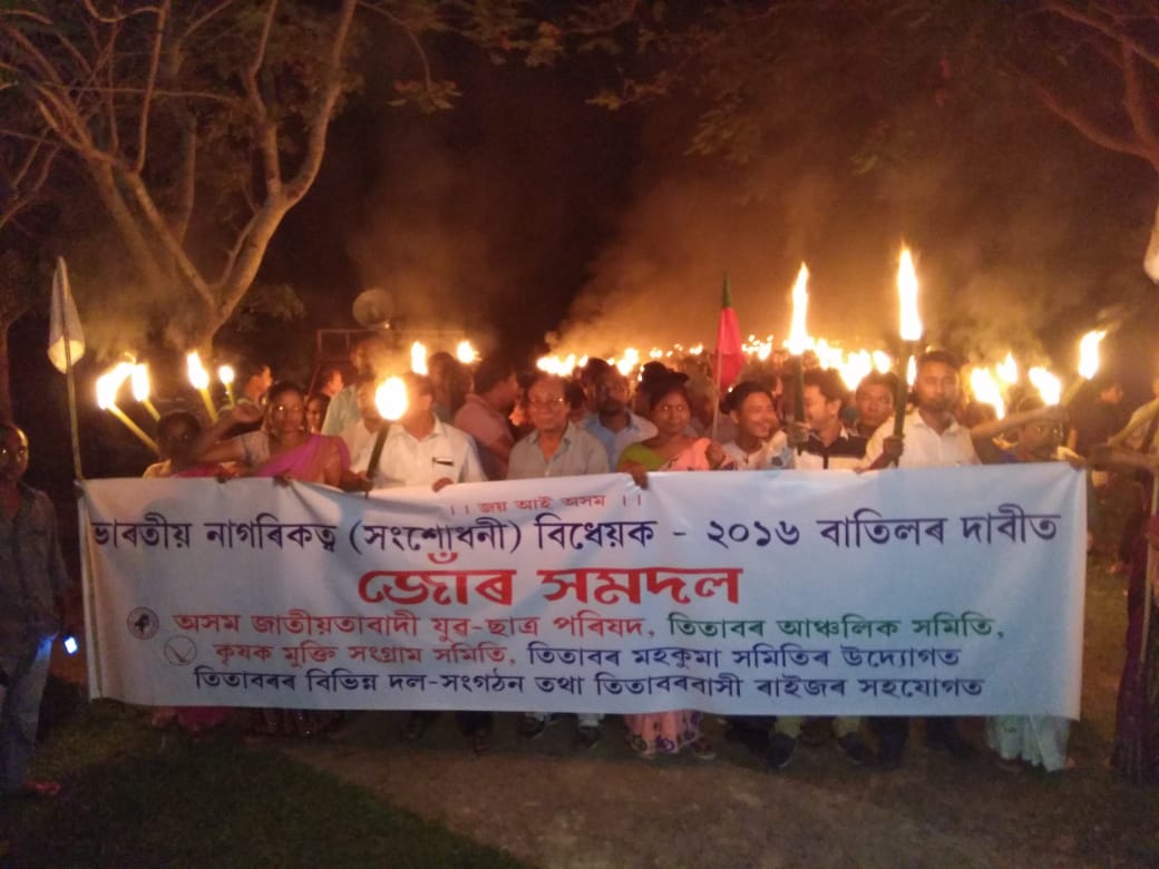তিতাবৰ, সংবাদ ৩৬৫, ১ জুনঃ নাগৰিকত্ব সংশোধনী বিধেয়ক বাতিলৰ দাবীত শুক্ৰবাৰে সন্ধিয়া তিতাবৰৰ মিহিৰাম শইকীয়া উচ্চতৰ মাধ্যমিক বিদ্যালয় খেল পথাৰৰ পৰা অসম জাতীয়তাবাদী যুৱ ছাত্ৰ পৰিষদৰ তিতাবৰ আঞ্চলিক সমিতি আৰু কৃষক মুক্তি সংগ্ৰাম সমিতিৰ তিতাবৰ মহকুমা সমিতিৰ উদ্যোগত তিতাবৰ বিভিন্ন স্থায়ী দল সংগঠনৰ সহযোগত সহস্ৰাধিক পুৰুষ মহিলাই জোৰ এক বৃহৎ জোৰ সমদল উলিয়াই। সমদলত অংশগ্ৰহণ কৰা সহস্ৰাধিক প্ৰতিবাদকাৰীয়ে নৰেন্দ্ৰ মোদী মূর্দাবাদ, সৰ্বানন্দ সোনোৱাল মূর্দাবাদ, আৰএছএছৰ দাদাগিৰী নচলিব, নাগৰিকত্ব সংশোধনী বিধেয়ক বাতিল কৰিব লাগিব বিভিন্ন চৰকাৰ বিৰোধী শ্লোগানেৰে তীব্ৰ প্ৰতিবাদ সাব্যস্ত কৰে। প্ৰতিবাদকাৰী দলটোৱে তিতাবৰৰ মিহিৰাম শইকীয়া উচ্চতৰ মাধ্যমিক বিদ্যালয়ৰ খেল পথাৰৰ পৰা তিতাবৰ নগৰৰ মাজেদি জোৰ সমদল উলিয়াই তিতাবৰৰ গুুুুড্ডু চিনেমা গৃহৰ সমীপত প্ৰতিবাদী জোৰ সমদল কাৰ্যসূচী সমাপ্ত কৰে।