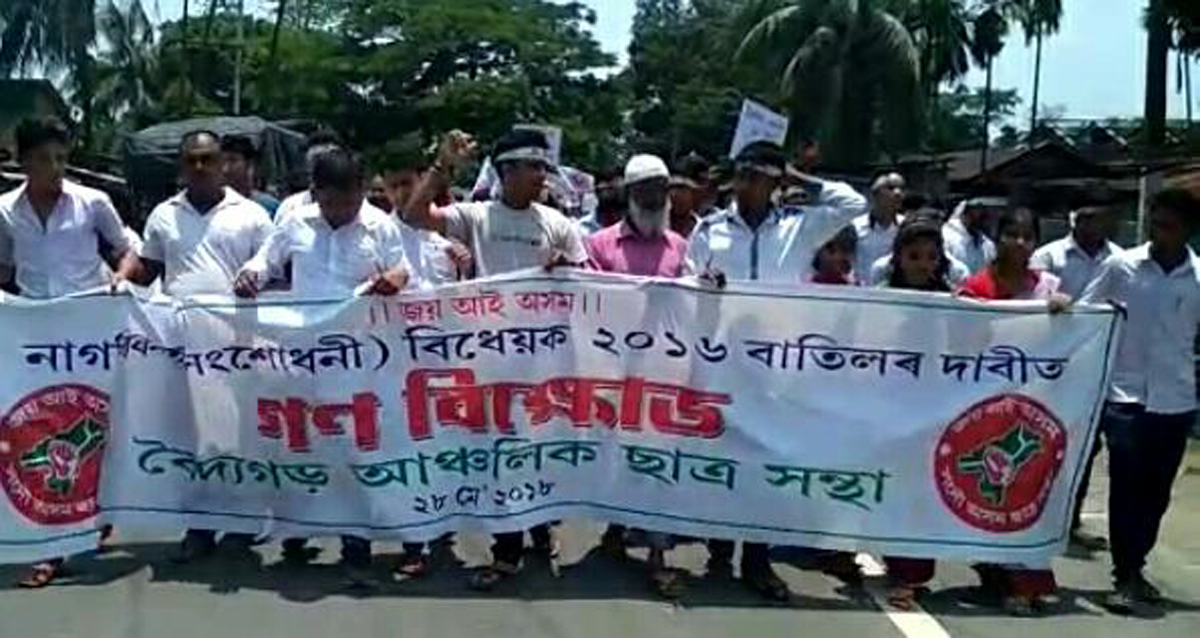 ৰঙিয়া, সংবাদ ৩৬৫, ২৮ মেঃ নাগৰিকত্ব সংশোধনী বিধেয়কৰ বিৰুদ্ধে ৰাজ্যজুৰি তীব্ৰ প্ৰতিবাদ অব্যহত থকাৰ সময়তে সোমবাৰে এই বিতৰ্কিত বিধেয়কখনৰ বিৰুদ্ধে উত্তপ্ত হৈ পৰে ৰঙিয়া। ৰঙিয়াৰ তুলসীবাৰীত বৈদ্যগড় আঞ্চলিক ছাত্র সন্থাৰ লগতে জাতি, ধৰ্ম, বৰ্ণ নিৰ্বিশেষে সকলো ৰাইজ ঐক্যবদ্ধ হৈ নাগৰিকত্ব সংশোধনী বিধয়েকখনৰ বিৰোধীতা কৰি ৰাজপথলৈ ওলাই আহি তীব্ৰ প্ৰতিবাদ সাব্যস্ত কৰিলে৷ প্ৰতিবাদকাৰী সকলে চৰকাৰ বিৰোধী শ্লোগানেৰে গণ বিক্ষোভ প্ৰদৰ্শন কৰি বৈদ্যগড় আঞ্চলিক ছাত্র সন্থাৰ কাৰ্যালয়ৰ পৰা ভাৰত ভূটান আন্তঃৰাষ্ট্ৰীয় ঘাইপথেৰে প্ৰতিবাদী সমদল উলিয়াই কেন্দ্ৰীয় চৰকাৰ মূৰ্দাবাদ, ৰাজ্য চৰকাৰ মূৰ্দাবাদ, জাতীয় নায়ক মূর্দাবাদ, নাগৰিকত্ব সংশোধনী বিধেয়ক ২০১৬ বাতিল কৰক শ্লোগানেৰে ৰাজপথ উত্তাল কৰি তোলে৷ আছুৰ লগতে ৰঙিয়াত অসম জাতীয়তাবাদী যুৱ ছাত্ৰ পৰিষদেও বিধেয়কখন বাতিলৰ দাবীত এক বিশাল গণ সমদল উলিয়াই তীব্ৰ প্ৰতিবাদ সাব্যস্ত কৰে। এই প্ৰতিবাদী সমদলত ৰঙিয়াৰ কেইবাটাও দল সংগঠনৰ লগতে সহস্ৰাধিক লোকে অংশগ্ৰহণ কৰে। ৰঙিয়া নগৰৰ মূল পথেৰে সহস্ৰাধিক প্ৰতিবাদকাৰীয়ে প্ৰতিবাদী সমদল উলিয়াই নাগৰিকত্ব সংশোধনী বিধেয়কৰ বিৰোধিতা কৰে। সমদলত অংশগ্ৰহণ কৰি প্ৰতিবাদকাৰী সকলে নাগৰিকত্ব সংশোধনী বিধেয়ক আইন বাতিল কৰক, কেন্দ্ৰ চৰকাৰ মূর্দাবাদ, ৰাজ্য চৰকাৰ হায় হায়, নাগৰিকত্ব সংশোধনী বিধেয়ক আইনৰ জড়িয়তে কেন্দ্ৰ চৰকাৰে হিন্দু বাংলাদেশীক সংস্থাপন কৰিব বিচৰা কার্যক কেতিয়াও মানি লোৱা নহব, ধৰ্ম ভিত্তিত নাগৰিকত্ব প্ৰদান কৰা কেতিয়াও মানি লোৱা নহব, নাগৰিকত্ব সংশোধনী বিধেয়কৰ বিৰুদ্ধে আন্দোলন আৰম্ভ হৈছে আৰু এই আইন বাতিল নকৰালৈকে আন্দোলন অব্যহত থাকিব ধ্বনিৰে পৰিবেশ উত্তাল কৰি তোলে।