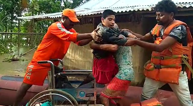 নুমলীগড়, সংবাদ ৩৬৫, ৪ আগষ্টঃ পৃথিৱীত এনেকুৱা কোনো শক্তি নাই যে যিয়ে নিজৰ কন্যা সন্তানতকৈও আনৰ স্নেহৰ প্ৰতি বেছি দৰদ৷ এজনী কন্যা সন্তানৰ প্ৰথম প্ৰেমেই হৈছে পিতৃ৷ পিতৃ স্নেহেই হৈছে কন্যা স্নেহৰ মৰমৰ এনাজৰী৷ তেনে এক পিতৃ স্নেহৰ দুৰ্ভগীয়া পৰিয়ালক উদ্ধাৰ কৰিলে আছাম টকচে৷ বৃহত্তৰ মৰঙিৰ ১ নং কৰ্দৈগুৰিত সাগৰ সদৃশ পৰিবেশৰ মাজতে আছে এটা পৰিয়াল৷ যিটো পৰিয়ালত আছে  বিশেষ ভাৱে সক্ষম কন্যা৷ এই পৰিয়ালটো  তিনি দিনে জলপ্ৰলয়ৰ মাজত  জল বন্দী হৈ আছিল৷ কৃষ্ণ বাহাদুৰ চেত্ৰী নামৰ পিতৃজনে  ডাঙৰ জীয়ৰিৰ সৈতে আশ্ৰয় সিবিৰলৈ নগ’ল একমাত্ৰ বিশেষ ভাৱে সক্ষম সৰু কন্যাৰ বাবেই৷ সকলো গাওঁবাসীয়ে আশ্ৰয় শিবিৰত আশ্ৰয় লোৱাৰ পাছতো নিজৰ ঘৰ খন এৰি তথা আপোন গাও খন এৰি নগৈ দুই কন্যাৰ সৈতে তিনি দিনে থাকিল পানীৰ মাজতে৷ কিজানিবা আশ্ৰয় শিবিৰত কষ্ট পাই বিশেষ ভাৱে সক্ষম সৰু জীয়ৰী পূজাই৷ শনিবাৰে মৰঙি চক্ৰ বিষয়া কাৰ্য্যালয়ৰ ভাৰপ্ৰাপ্ত চক্ৰ বিষয়া কুকিলা গগৈ, এন দি আৰ এফ, অসম জাতীয়তাবাদী যুৱ ছাত্ৰ পৰিষদৰ সহযোগত আছাম টকচে সুকলমে পৰিয়ালটোক উদ্ধাৰ কৰি আশ্ৰয় শিবিৰত থকাৰ ব্যৱস্থা কৰি দিয়ে৷