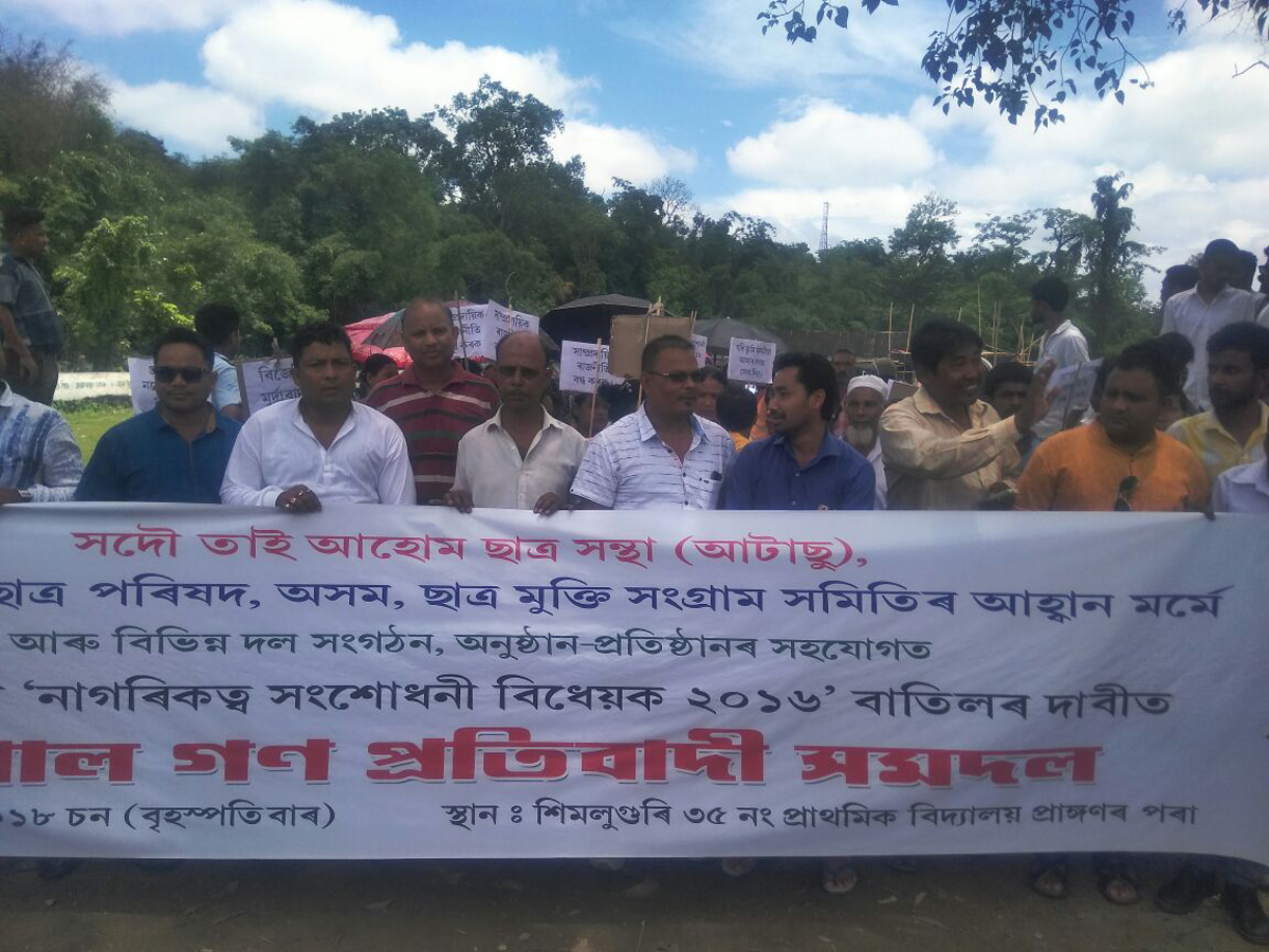 শিমলুগুৰিৰ পৰা নেকিবুল হক, সংবাদ ৩৬৫, ৭ জুনঃ নাগৰিকত্ব সংশোধনী বিধেয়ক বাতিলৰ দাবীত ৰাজ্যজুৰি প্ৰতিবাদ অব্যহত থকাৰ বৃহস্পতিবাৰে শিমলুগুৰিত সহস্ৰাধিক লোক বিধেয়কখন বাতিলৰ দাবীত তীব্ৰ প্ৰতিবাদ সাব্যস্ত কৰে। সদৌ তাই আহোম ছাত্র সন্থা, ছাত্ৰ মুক্তি সংগ্ৰাম সমিতি আৰু সংগ্ৰামী যুৱ ছাত্র পৰিষদৰ আহ্বান মৰ্মে এক প্ৰতিবাদী সমদল উলিয়াই প্ৰচণ্ড গৰমকো নেওচি বিজেপি চৰকাৰ মূর্দাবাদ, আৰএছএছ মুৰ্দাবাদ, জাতীয় নায়ক হায় হায় শ্লোগানে সহস্ৰাধিক পুৰুষ মহিলাৰ লগতে ছাত্র ছাত্ৰী সকলে উত্তাল প্ৰতিবাদ সাব্যস্ত কৰি ৰাজপথ উত্তাল কৰি তোলে। বিধেয়কখনৰ বিৰোধিতা কৰি বিজেপি চৰকাৰ জাতীয় নায়ক সৰ্বানন্দ সোণোৱালক তীক্ষ্ণ ভাষাৰে সমালোচনা আৰু প্ৰত্যাহ্বান জনাই সংগ্ৰামী যুৱ ছাত্ৰ পৰিষদৰ মুখ্য উপদেষ্টা অংকুৰ শইকীয়া, আটাছুৰ মুখ্য উপদেষ্টা অশ্বীনি চেতিয়া সম্পাদক লিটুল বুঢ়াগোহাঁই, কৃষক মুক্তিৰ সম্পাদক ধৈৰ্য্য কোৱৰ, গণ মুক্তি সংগ্ৰাম সমিতিৰ মুখ্য আহ্বায়াক ল্যূ চেন শ্যাম গোহাঁই, ছাত্ৰ মুক্তিৰ সম্পাদক মানস কোঁৱৰৰে মন্তব্য প্ৰকাশ কৰি নাগতিকত্ব সংশোধনী বিধেয়কখন অতি শীঘ্ৰে বাতিল কৰাৰ দাবী জনায়।