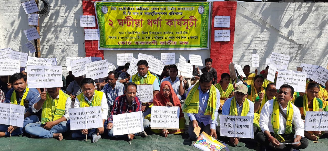 সদ্য স্বাক্ষৰিত বি টি আৰ চুক্তিক সম্পূৰ্ণভাৱে উলংঘা কৰি ষড়যন্ত্ৰমূলকভাৱে বঙাইগাঁৱৰ নিউ বঙাইগাঁওস্থিত ডবা মেৰামতি কাৰখানাটো বি টি আৰত অন্তৰ্ভুক্তিকৰণৰ অভিযোগ উত্থাপন কৰি কোচ ৰাজবংশী জাতীয় মঞ্চৰ বঙাইগাঁও জিলা সমিতিয়ে প্ৰতিবাদী ধৰ্ণা কাৰ্যসূচী। বঙাইগাওঁ চহৰৰ পাগলাস্থানস্থিত ৰে’লৱে অভিযান্ত্ৰিক কাৰ্যালয়ৰ সন্মুখত শুকুৰবাৰে পুৱা ১১ বজাৰ পৰা দিনৰ ১ বজালৈ ৰূপায়ণ কৰা ধৰ্ণা কাৰ্যসূচীৰ অন্তত জিলা সমিতিয়ে বঙাইগাঁও জিলাৰ উপায়ুক্তৰ জৰিয়তে ভাৰতৰ প্ৰধানমন্ত্ৰী নৰেন্দ্ৰ মোদী , কেন্দ্ৰীয় গৃহমন্ত্ৰী অমিত শ্বাহ আৰু অসমৰ মুখ্যমন্ত্ৰীলৈ পৃথকে পৃথকে পাঁচ দফীয়া দাবী সম্বলিত স্মাৰকপত্ৰ প্ৰেৰণ কৰে৷ স্মাৰকপত্ৰত সংগঠনটোৰ জিলা সমিতিয়ে নিউ বঙাইগাঁওস্থিত ৰে’লৱে ডবা মেৰামতি কাৰখানাটো বি টি আৰত অন্তৰ্ভুক্তিকৰণ বন্ধ কৰা, ভূমিশ্বৰ পাহাৰখন বি টি এ ডিৰ পৰা তৎকালীনভাৱে কৰ্তন কৰা, প্ৰস্তাৱিত কমতাপুৰ স্বায়ত্ব শাসিত পৰিষদৰ সংলগ্ন কোচ ৰাজবংশী গাঁওসমূহ বি টি এ ডিৰ পৰা কৰ্তন কৰা, বড়ো আন্দোলনত সৰ্বহাৰা হোৱা ৬৪৩টা শৰণাৰ্থী পৰিয়ালক আৰ্থিক সাহাৰ্য প্ৰদান কৰা আৰু বামুণটিলা, বিদ্যাপুৰ আৰু পশ্চিম ভাদ্ৰাগাঁৱৰ শৰণাৰ্থী শিবিৰত থকা ৬৪৩টা পৰিয়ালক উপযুক্ত সংস্থাপন প্ৰদান কৰি মাটিৰ পট্টা প্ৰদান কৰাৰ দাবী জনায়৷