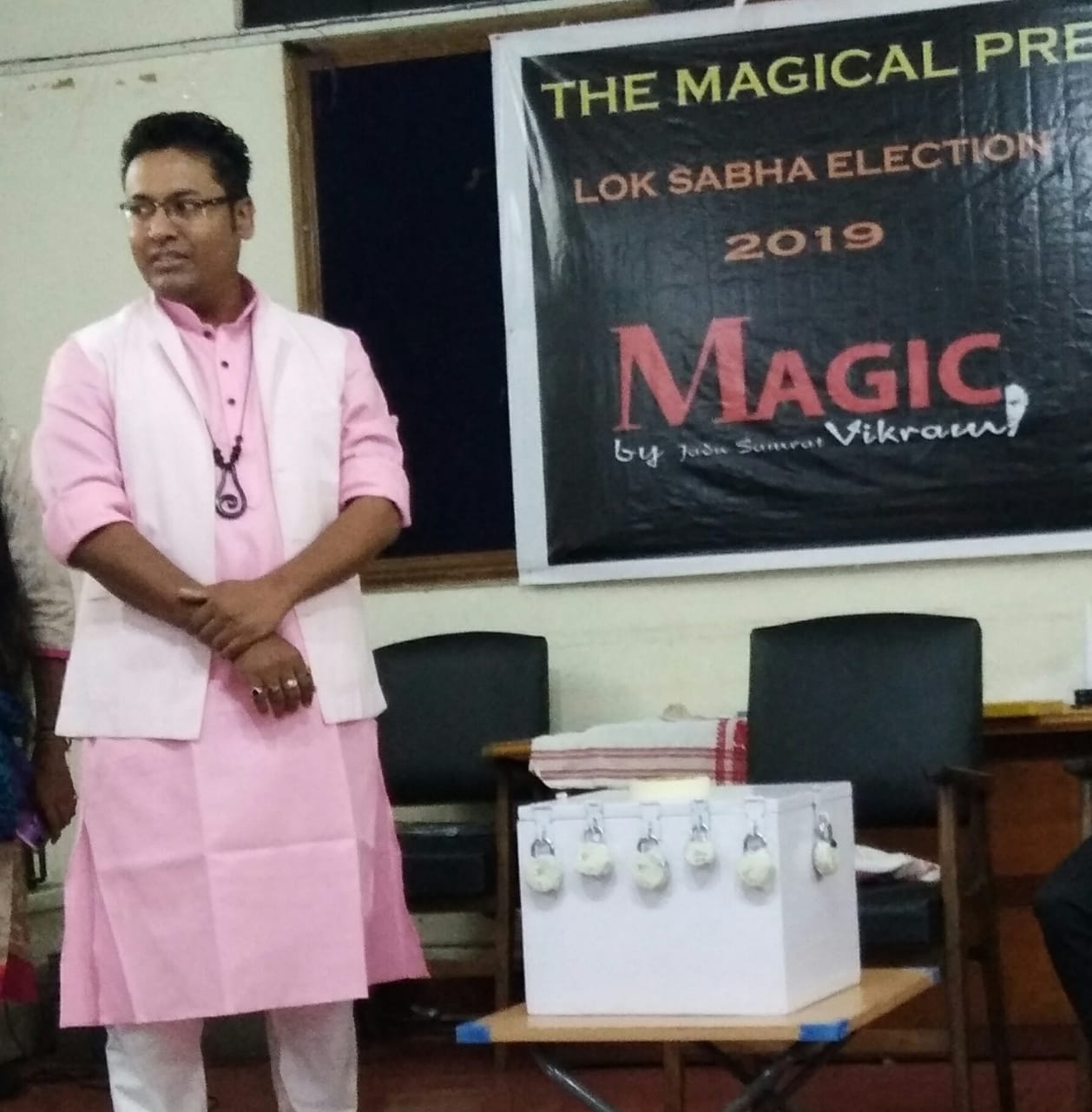 ১৪ মে’ অৰ্থাৎ মঙলবাৰে গুৱাহাটী প্ৰেছ ক্লাৱৰ এক ব্যতিক্ৰমী অনুষ্ঠান অনুষ্ঠিত কৰি যাদু সম্ৰাট বিক্ৰমে এটা বাকছৰ ভিতৰত বন্দী কৰিলে ২০১৯ বৰ্ষৰ লোকসভা নিৰ্বাচনৰ ফলাফল। উক্ত বাকচত আছিল সাতটা তলা। বাকচটোত থকা সাতটা তলা অসমৰ বিভিন্ন সংবাদ মাধ্যমৰ সাংবাদিক, বিষয়ববীয়া লোকে বন্ধ কৰে।