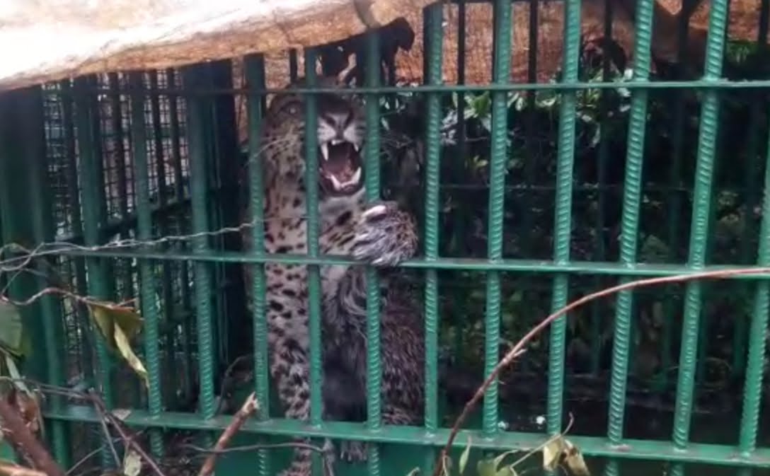 চৰাইদেউৰ পৰা সুৰেণ বুঢ়াগোঁহাই, সংবাদ ৩৬৫, ৩ জুন : চৰাইদেউ জিলাৰ সাপেখাতীত পিঞ্জৰাবদ্ধ নাহৰফুটুকী বাঘ। সোণাৰি সমষ্টিৰ বিধায়িকা নৱনীতা সন্দিকৈৰ চাহ বাগিচাত পিঞ্জৰাৱদ্ধ এটা নাহৰফুটুকী বাঘ। নাহৰফুটুকী বাঘটোক চাবলৈ বাগিচাখনত ৰাইজৰ ভিৰ।