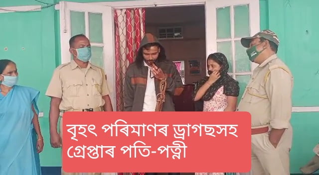 নগাঁৱত আৰক্ষীৰ অভিযানত ড্ৰাগছ ব্যৱসায়ী গ্ৰেপ্তাৰ। বৃহৎ পৰিমাণৰ ড্ৰাগছসহ গ্ৰেপ্তাৰ পতি-পত্নী। নগাঁও সদৰ আৰক্ষীয়ে চহৰখনৰ খীষ্টানপট্টিৰ এ ডি পি ৰোডত অভিযান চলাই বৃহৎ পৰিমাণৰ ড্ৰাগছ আৰু সুৰা জব্দ কৰে।