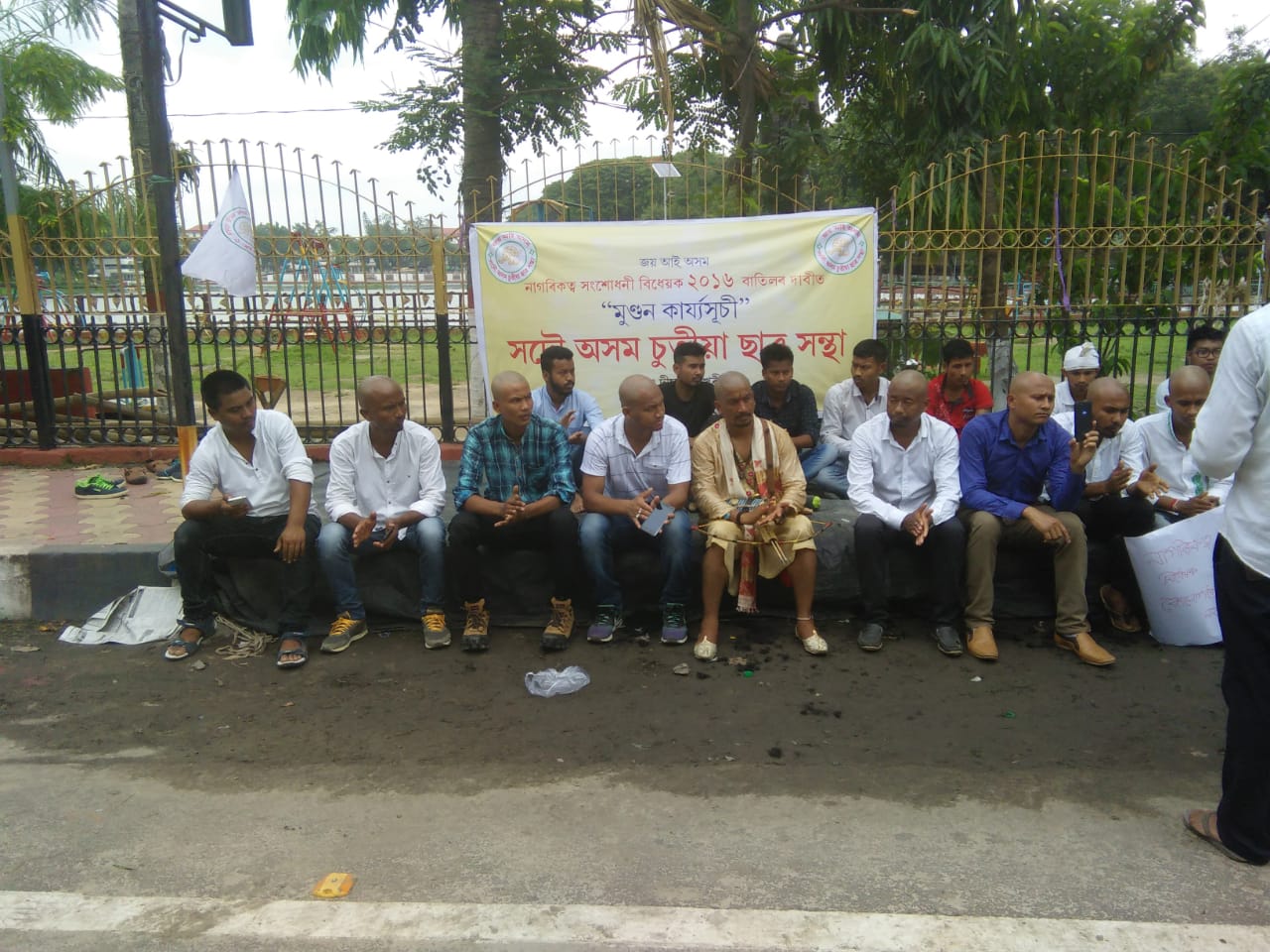 গুৱাহাটী, সংবাদ ৩৬৫, ২২ মেঃ পৰিবৰ্তনৰ শ্ল’গান দি শাসনলৈ অহা বিজেপি নেতৃত্বাধীন ৰাজ্য চৰকাৰ খনৰ জনসাধৰণ বিৰোধি স্থিতিৰ বিৰুদ্ধে মঙলবাৰে উত্তাল হৈ পৰে দীঘলীপুখুৰী পাৰ। বিতৰ্কিত নাগৰিকত্ব সংশোধনী বিধেয়কখন প্ৰত্যাহাৰৰ দাবীত ৰাজ্যৰ পৰিবেশ অগ্নিগৰ্ভা হৈ থকাৰ সময়তে সদৌ অসম চুতীয়া ছাত্ৰ সন্থাই মহানগৰীৰ দীঘলীপুখুৰী পাৰত মুণ্ডন কাৰ্যসূচী পালন কৰি বিধেয়ক খনৰ বাতিল কৰাৰ দাবী জনায়। ৰাজ্যখন অবৈধ বাংলাদেশীৰ মুক্ত বিচৰণস্থলীলৈ পৰিণত হোৱাৰ লগতে অসম তথা অসমীয়া জাতিৰ অস্তিত্ব আৰু ভাষা সংস্কৃতিৰ প্ৰতি ভাবুকি সৃষ্টি কৰা নাগৰিকত্ব সংশোধনী বিধেয়ক খনৰ তীব্ৰ বিৰোধিতা কৰি সদৌ অসম চুতীয়া ছাত্ৰ সন্থাই অসমীয়া লোকক বিশেষ সাংবিধানীক অধিকাৰ প্ৰদান কৰা, ভূমিৰ নিৰাপত্তা আৰু অধিকাৰৰ দাবী জনায়। উল্লেখ্য যে, মুণ্ডন প্ৰতিবাদী অনুস্থিত কাৰ্যসূচীত সদৌ অসম চুতীয়া ছাত্ৰ সন্থাৰ মূখ্য উপদেষ্টা জ্যোতিপ্ৰসাদ চুতীয়া, উপদেষ্টা বিপুল চুতীয়া, কাৰ্যকৰী সভাপতি সমীৰণ বৰা, সাধাৰণ সম্পাদক মহেশ বৰা প্ৰমুখ্যে উপস্থিত থাকে চুতীয়া ছাত্র সংস্থাৰ একাধিক সদ্যস, কৰ্মকৰ্তা সকল।