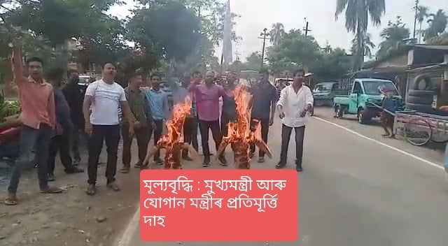 অসম জাতীয়তাবাদী যুৱ ছাত্র পৰিষদৰ চৰাইদেউ জিলা সমিতিৰ অস্বাভাৱিক মূল্যবৃদ্ধিৰ বিৰুদ্ধে প্ৰতিবাদ। মূল্যবৃদ্ধি নিয়ন্ত্ৰণত মুখ্যমন্ত্ৰী আৰু যোগান মন্ত্ৰী সম্পুৰ্ণৰূপে ব্যৰ্থ হোৱাৰ অভিযোগ। অসম জাতীয়তাবাদী যুৱ-ছাত্র পৰিষদৰ সোণাৰি কাৰ্য‍্যলয়ৰ সন্মুখত মুখ্যমন্ত্ৰী আৰু যোগান মন্ত্ৰীৰ প্ৰতিমূৰ্ত্তি দাহ।