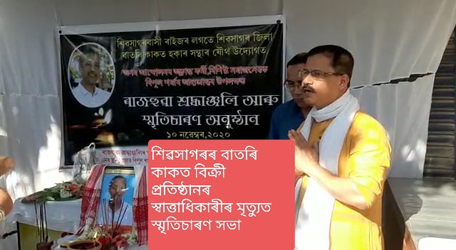শিৱসাগৰৰ আগৰণুৱা ব্যক্তি এম.আই.বড়া, সৌৰভ চলিহা, এনামুদ্দিন আহমেদ আদিৰ উদ্যোগত আয়োজন কৰা শ্ৰদ্ধাঞ্জলি আৰু স্মৃতিচাৰণ সভাত বহু লোকে অংশগ্ৰহণ কৰে।