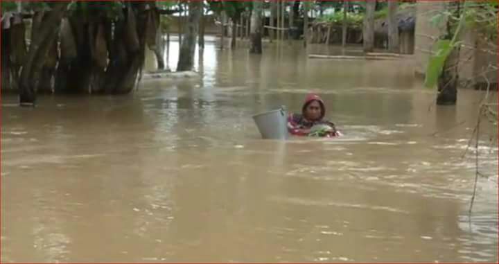হোজাই, সংবাদ ৩৬৫, ১৫ জুনঃ ৰাজ্যৰ কেইবাখনো জিলা এতিয়া বানৰ কবলত। বছৰৰ প্ৰথমটো বানে ৰাজ্যত সৃষ্টি কৰিছে তাণ্ডৱ। হোজাই জিলাত কপিলী নদীৰ পানীয়ে কালৰূপ ধাৰণ কৰাত প্লাৱিত হৈ পৰিছে জিলাখনৰ কেইবাখনো গাঁও। কপিলীৰ পানীয়ে দুটাকৈ নিৰ্মীয়মান মথাউৰি ছিঙি পেলোৱাত নেপালীখুটি, হাতিমুৰা, তৰাডুবি আৰু কেন্দ্ৰগুৰিৰ বিস্তীৰ্ণ এলেকা এতিয়া পানীৰ তলত। পশ্চিম কাৰ্বি আংলঙ-হোজাই সংযোগী একমাত্র গড়কপ্তানি পথটিৰ ওপৰেদি কপিলী নদীৰ বাঢ়নী পানী বাগৰাত দুয়োখন জিলাৰে যাতায়ত ব্যৱস্থা সম্পূৰ্ণৰূপে বিচ্ছিন্ন হৈ পৰিছে। জিলাখনত কপিলী আৰু ডিমুৰু নদীৰ পানী ফেনে ফুটুকাৰে বৃদ্ধি পোৱাত বিভিন্ন অঞ্চল বানৰ কবলত পৰাৰ লগতে বানত আবদ্ধ হৈ পৰিছে কেইবা হাজাৰ লোক। জিলাখনৰ বিভিন্ন অঞ্চলত বানত আবদ্ধ হৈ থকা ৰাইজ প্ৰশাসনৰ ফালৰ পৰা কোনো ধৰণৰ সঁহাৰি নোপোৱাৰ অভিযোগ উত্থাপিত কৰি বানাক্ৰান্ত ৰাইজ ক্ষোভিত হৈ পৰিছে। বৰ্তমান হোজাইত বানাক্ৰান্ত ৰাইজৰ মাজত হাহাকাৰ পৰিস্থিতি সৃষ্টি হৈছে।