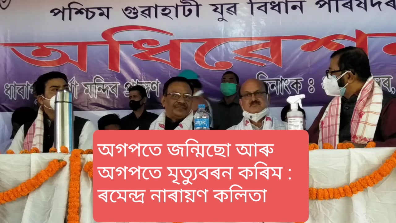 অগপতে জন্মিছো আৰু অগপতে মৃত্যুবৰন কৰিম বুলি মন্তব্য বিধায়ক ৰমেন্দ্ৰ নাৰায়ণ কলিতাৰ। বিজেপিৰ লগত মিত্ৰতা থাকক বা নাথাকক পশ্চিম গুৱাহাটীত হাতী আৰু অগপৰ পতাকা থাকিবই।