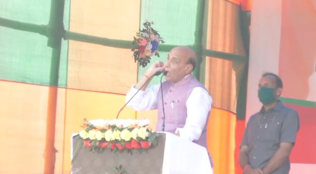 প্ৰতিৰক্ষা মন্ত্ৰী গৰাকীয়ে মহাপুৰুষ শ্ৰীমন্ত শংকৰদেৱক স্মৰণ কৰি গুৰুজনাই ধৰ্ম, ভাষা-সংস্কৃতি ৰক্ষাৰ বাবে অসমত কৰি যোৱা অৱদানৰ বিষয়ে উল্লেখ কৰে। ২০১৪ চনত দেশত প্ৰধানমন্ত্ৰী মোদীয়ে চৰকাৰ গঠন কৰাৰ পিছতেই সন্ত্ৰাসবাদ নিঃশেষ কৰাৰ যি সিদ্ধান্ত লৈছিল সেই সিদ্ধান্ত মতেই সন্ত্ৰাসবাদ পৰিসমাপ্তি ঘটিছে আৰু সকলো জনসাধাৰণে মুক্ত মনেৰে পৰিভ্ৰমণ কৰিব পাৰিছে বুলিও মন্তব্য কৰে ৰাজনাথ সিঙে। বিজেপি চৰকাৰৰ দিনতেই সুধাকণ্ঠ ডঃ ভূপেন হাজৰিকাক ভাৰতৰত্ন সন্মানেৰে বিভূষিত কৰিছিল। অসমৰ কৃষি খণ্ড, চাহ বাগিচাৰ উন্নয়নৰ, আত্মসহায় গোট আৰু বিভিন্ন উন্নয়নমূলক কাম বিজেপি চৰকাৰৰ দিনত হৈছে বুলি প্ৰতিৰক্ষা মন্ত্ৰী গৰাকীয়ে উল্লেখ কৰাৰ লগতে বিশ্বনাথ সমষ্টিৰ বিজেপি প্ৰাৰ্থী প্ৰমোদ বৰঠাকুৰক পদুম ফুলৰ চিনত ভোট দি বিপুল ভোটত জিকাবলৈ অনুৰোধ জনায়।