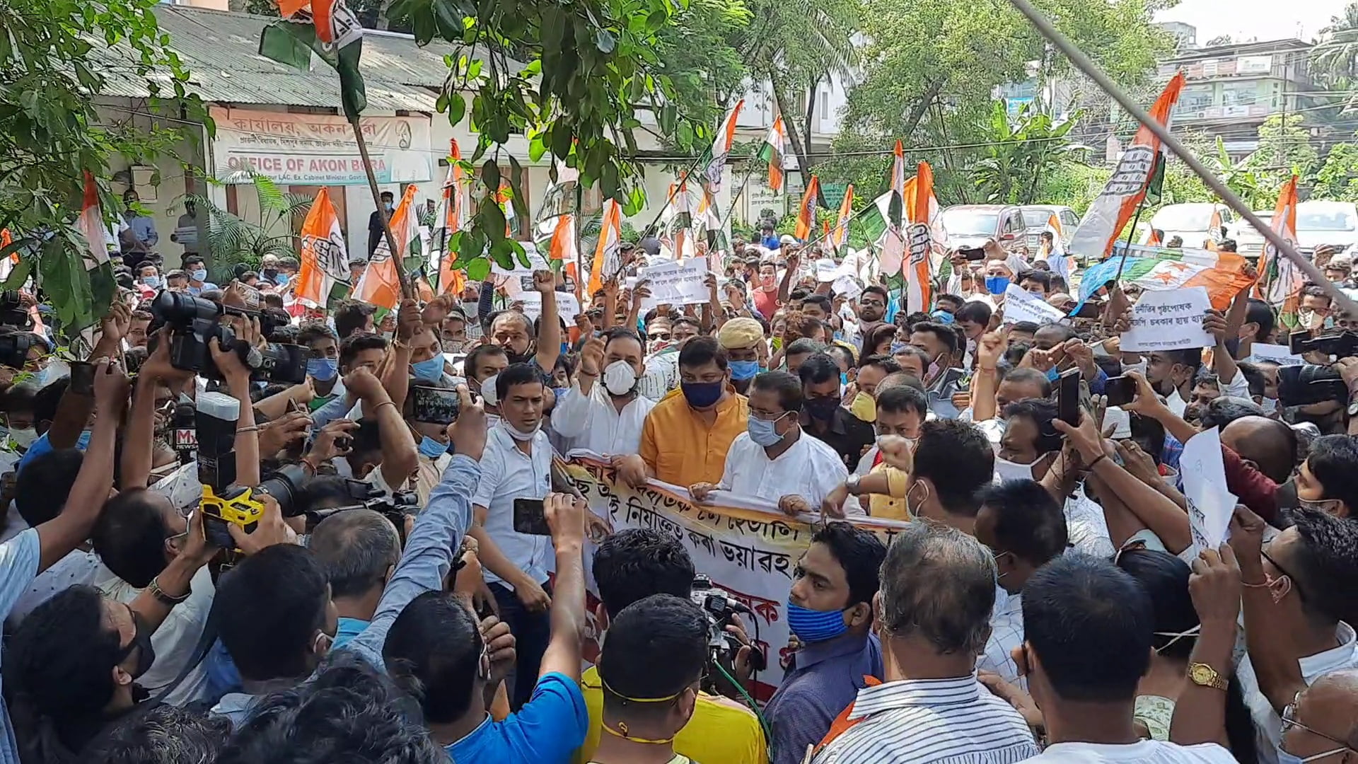 মানবেন্দ্ৰ শৰ্মা ভৱনৰ সন্মুখত কংগ্ৰেছ কর্মী সকলে অসম আৰক্ষীৰ নিযুক্তিৰ কেলেংকাৰীৰ উচিত তদন্তৰ দাবীত বিভিন্ন চৰকাৰ বিৰোধী শ্ল’গানেৰে পৰিৱেশ উত্তাল কৰি তোলে। আৰক্ষীয়ে প্ৰতিবাদকাৰী কংগ্ৰেছ কর্মী সকলক বাধা প্ৰদনা কৰাত প্ৰতিষ্ঠিত অধিক উত্তপ্ত হৈ পৰা পৰিলক্ষিত হয়। অৱশেষত আৰক্ষীয়ে প্ৰতিবাদকাৰী কংগ্ৰেছ কর্মী সকলক আটক কৰাত পৰিস্থিতি শান্ত হয়।