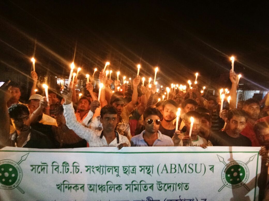 তামুলপুৰ, সংবাদ ৩৬৫, ১৭ এপ্ৰিলঃ জম্মু কাশ্মীৰৰ আচিফা নামৰ এগৰাকী আঠ বছৰীয়া কিশোৰীক অতি নিষ্ঠুৰ ভাবে ধৰ্ষণ কৰি হত্যা কৰাৰ প্ৰতিবাদত মঙলবাৰে বাক্সা জিলাৰ খন্দিকৰত এবিএমছুৰ তীব্ৰ প্ৰতিবাদ। এবিএমছুৰ তামুলপুৰ সমিতিৰ শতাধিক কৰ্মীয়ে মঙলবাৰে বন্তি প্ৰজ্বলন কৰি এক প্ৰতিবাদী সমদল উলিয়াই প্ৰতিবাদ সাব্যস্ত কৰি পৰিবেশ উত্তাল কৰি তোলে। আচিফাক ণধৰ্ষণ কৰি হত্যা কৰা নৰপিশাচ কেইজনক আতি শীঘ্ৰে ফাঁচী দিয়াৰ দাবীত এবিএমছুয়ে এই প্ৰতিবাদ সমদল উলিয়াই। ধর্ষণকাৰীৰ বিৰুদ্ধে অতি শীঘ্ৰে কেন্দ্ৰীয় চৰকাৰে নতুন আইন প্ৰণয়ন কৰি ধৰ্ষণকাৰী সকলক সোনকালে বিচাৰ কৰি কঠোৰ শাস্তি দিয়াৰ ব্যৱস্থা কৰাৰ দাবী জনায় এবিএমছুয়ে। প্ৰতিবাদী কাৰ্যসূচীত প্ৰতিবাদকাৰী সকলে হাতে হাতে মম জ্বলাই আচিফা হত্যাকাৰীক ফাঁচী দিয়ক, আচিফাক ন্যায় দিয়ক, ধৰ্ষণকাৰী হুঁচিয়াৰ, আইন শৃংখলা ৰক্ষা কৰিব নোৱাৰা বিজেপি চৰকাৰ হায় হায়, নাৰীক সুৰক্ষা প্ৰদান কৰক শ্লোগানেৰে পৰিবেশ উত্তাল কৰি তোলে। চৰকাৰে আচিফাৰ ধর্ষণ আৰু হত্যা কৰা লোক সকলক অতি শীঘ্ৰে ফাঁচীৰ দিয়াৰ ব্যৱস্থা কৰিব লাগে বুলি দাবী জনায় অন্যথা এবিএমছুয়ে দিল্লীত গণতান্ত্ৰিকভাৱে তীব্ৰ আন্দোলন গঢ়ি তোলাৰ হুংকাৰ দিয়ে।