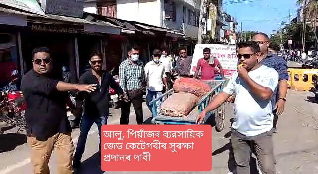 শিৱসাগৰত মূল্যবৃদ্ধিৰ বিৰুদ্ধে ব্যংগাত্মক প্ৰতিবাদ। আলু, পিয়াঁজৰ ব্যৱসায়িক জেড কেটেগৰীৰ সুৰক্ষা প্ৰদানৰ দাবী। মূল্যবৃদ্ধি নিয়ন্ত্ৰণত ব্যৰ্থ বিজেপি চৰকাৰখনক তীব্ৰ সমালোচনা প্ৰতিবাদকাৰীৰ।