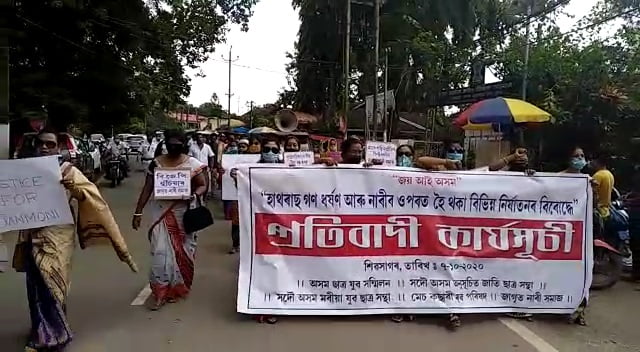 দেশ কঁপাই যোৱা উত্তৰ প্ৰদেশৰ গণধর্ষণ কাণ্ডক লৈ দেশজুৰি প্ৰতিবাদ অব্যাহত থকাৰ মাজতে ঐতিহাসিক শিৱসাগৰতো প্ৰতিবাদৰ জোৱাৰ উঠিছে। ধর্ষণৰ বলি লৈ মৃত্যু হোৱা যুৱতী গৰাকীক ন্যায় প্ৰদাণৰ পৰিৱৰ্তে অতি পৰিকল্পিতভাৱে উত্তৰ প্ৰদেশ বিজেপি চৰকাৰে দোষীক ৰক্ষণাবেক্ষণ দিয়াৰ নামত ধর্ষণৰ বলি হোৱা যুৱতী গৰাকীৰ বাবে ন্যায় বিচৰা প্ৰতিবাদী কন্ঠক মষিমূৰ কৰা কাৰ্যৰ বিৰুদ্ধে বুধবাৰে উত্তাল হৈ পৰে শিৱসাগৰ চহৰ৷ নাৰীৰ ওপৰত সংঘটিত হৈ থকা বিভিন্ন নির্যাতনৰ বিৰুদ্ধে শিৱসাগৰত ৬ টাকৈ জাতীয় সংগঠনে তীব্ৰ প্ৰতিবাদ সাব্যস্ত কৰে। অসম ছাত্ৰ যুৱ সন্মিলন, সদৌ অসম অনুসূচিত জাতি ছাত্ৰ সন্থা, সদৌ অসম মৰীয়া যুৱ ছাত্ৰ সন্থা, মেচ কছাৰী যুৱ পৰিষদ, জাগৃত নাৰী সমাজে যুটীয়াভাৱে নগৰৰ মাজেৰে পদযাত্রা কৰি বিভিন্ন শ্ল’গানেৰে উত্তাল কৰি তোলে শিৱসাগৰ নগৰৰ ৰাজপথ। সহস্ৰাধীক প্ৰতিবাদকাৰীয়ে জিলা উপায়ুক্তৰ কাৰ্যালয়ৰ সন্মুখত বিজেপি গ’ বেক, যোগী চৰকাৰ মুর্দাবাদ ধ্বনিৰে প্রতিবাদ সাব্যস্ত কৰে।