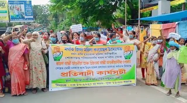 উত্তৰ প্ৰদেশ ধৰ্ষণকাণ্ডৰ বিৰূদ্ধে নগাঁৱত মহিলা কংগ্ৰেছৰ প্ৰতিবাদ। কভিড প্ৰট’কল ভংগ কৰি প্ৰতিবাদ সাব্যস্ত মহিলা কংগ্ৰেছ। একাংশই আকৌ কিহৰ বাবে এই প্ৰতিবাদ নজনাকৈ সাব্যস্ত কৰিলে প্ৰতিবাদত। বিজেপি চৰকাৰ বিৰোধী শ্ল’গানেৰে মহিলা কংগ্ৰেছে উত্তাল কৰিলে ৰাজপথ।