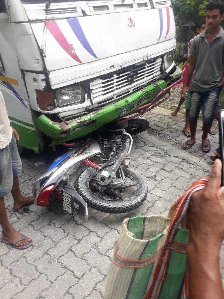 কলগাছিয়াৰ পৰা স্বফিকুল হাছান, সংবাদ ৩৬৫, ৫ জুলাইঃ বৰপেটা জিলাৰ কলগাছিয়া আৰক্ষী থানাৰ অন্তৰ্গত দেওকুৰা গাঁৱত বৃহস্পতিবাৰে দুপৰীয়া এক ভয়াৱহ পথ দুৰ্ঘটনা সংঘটিত হয়। এএছ-১৫-কে-২৬৬৯ নম্বৰৰ গ্লেমাৰ মটৰ চাইকেল আৰু এএছ-০১-বি-১৭১৩ নম্বৰৰ বাছ গাড়ীৰ মাজত হোৱা মুখামুখি সংঘৰ্ষত শ্বাহা আলী নামৰ মটৰ চাইকেল চালক আৰু আব্দুছ চালিম নামৰ আৰোহী গুৰুত্বৰভাৱে আহত হয়। দুর্ঘটনাত মটৰ চাইকেলখনৰ চালক আৰু আৰোহীজন বাছ গাড়ীখনৰ তলত সোমাই যোৱাত স্থানীয় ৰাইজে দুয়োকে বাছ গাড়ীৰ তলৰ পৰা উদ্ধাৰ কৰি অতি সংকতজনক অৱস্থাত ১০৮ এম্বুলেঞ্চত কলগাছিয়াৰ বৰপেটা অসমৰিক চিকিৎসালয়লৈ প্ৰেৰণ কৰে। উল্লেখ্য্, মটৰ চাইকেল আৰোহী দুজন বৰপেটা ৰোডৰ পৰা কলগাছিয়া অভিমুখে আহি থকা অৱস্থাত এই দুৰ্ঘটনা সংঘটিত হয় বুলি জানিব পৰা গৈছে।