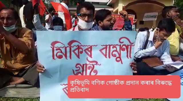 নগাঁৱৰ চামগুৰি ৰাজহ চক্ৰৰ অধীনৰ চলচলি মৌজাৰ তথা বঢ়হমপুৰ সমষ্টি অন্তৰ্গত মিকিৰবামুণীৰ লালুং গাঁও, আমদাঙা গাঁৱৰ ৰায়তী খতিয়ান প্ৰাপ্ত কৃষিভূমিৰ পৰা দীৰ্ঘদিন ধৰি দখলদাৰী কৃষক সকলক চৰকাৰ-প্ৰশাসনে বীৰত্ব প্ৰদৰ্শন কৰি উচ্ছেদ কৰি পাৱাৰ প্লান্ট প্ৰজেক্ট স্থাপন কৰিবলৈ লোৱা কাৰ্যৰ বিৰুদ্ধে শনিবাৰে চামগুৰি ৰাজহ চক্ৰ বিষয়া কাৰ্যালয়ৰ সন্মুখত তীব্ৰ প্ৰতিবাদ সাব্যস্ত কৰে কেইবাটাও দল সংগঠনে।
