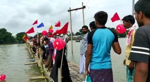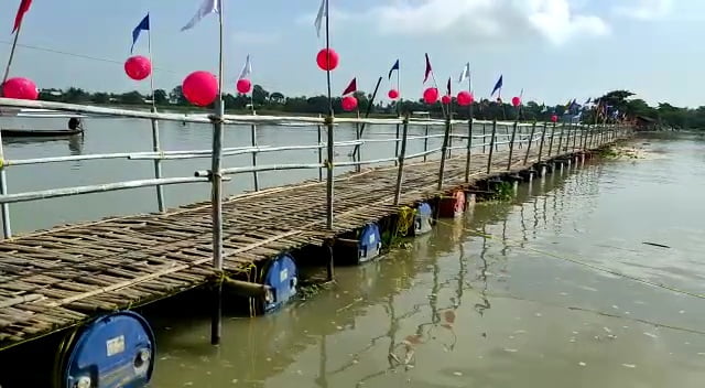 এক যন্ত্ৰণাদায়ক যুগৰ অৱসান ঘটাই শিক্ষিত যুৱকে সাজিলে এখন পানীত ওপঙি থকা বাঁহৰ দলং। প্ৰায় দহ লাখ টকা খৰচ কৰি ১৫০ মিটাৰ দৈৰ্ঘ্যৰ খুটি বিহীন দলং নিৰ্মাণ কৰাত উৎফুল্লিত অঞ্চলবাসী। চৰকাৰ অথবা জনপ্ৰতিনিধি ধনেৰে নহয়, গাঠিৰ ধন ভাঙি কেইজনমান শিক্ষিত যুৱকে নিৰ্মাণ কৰিলে এই দলংখন।
