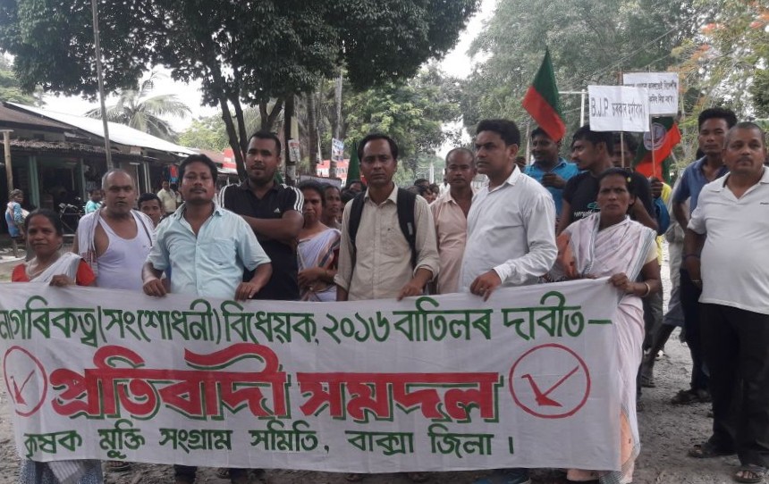 বাক্সাৰ পৰা অজিত ৰাভা, সংবাদ ৩৬৫, ২ জুনঃ নাগৰিকত্ব সংশোধনী বিধেয়কৰ বিৰুদ্ধে তামুলপুৰ মহকুমাৰ অন্তৰ্গত গান্ধীবাৰীত বাক্সা জিলা কৃষক মুক্তি সংগ্ৰাম সমিতিৰ উদ্যোগত এক প্ৰতিবাদী সমদল উলিওৱা হয়। প্ৰতিবাদী সমদলত প্ৰতিবাদকাৰী সকলে ফেষ্টুন, বেনাৰ লৈ জাতিধ্বংসী বিধেয়খন বাতিল কৰক, এই জুই জ্বলিছে জ্বলিবই, অসম চৰকাৰ মূর্দাবাদ, কৃষক মুক্তি জিন্দা বাদ, মোদী চৰকাৰ মূর্দাবাদ, আহ ঐ আহ ওলাই আহ শ্লোগানেৰে গান্ধীবাৰীৰ আকাশ বতাহ উত্তাল কৰি তোলে। প্ৰতিবাদী সমদলটো গান্ধীবাৰীৰ কাণ কটা চ’কৰ পৰা গান্ধীবাৰীৰ বিভিন্ন অঞ্চল হৈ গান্ধীবাৰী বজাৰ চ’কত সমাপ্ত ঘটে। সমদলত কৃষক মুক্তি সংগ্ৰাম সমিতিৰ কেন্দ্ৰীয় যুটীয়া সম্পাদক মুকুট ডেকা, বাক্সা জিলা সমিতিৰ সভাপতি নীলধৰ কলিতা, সম্পাদক থানেশ্বৰ কলিতা, সাংগঠনিক সম্পাদক ৰবীন ৰাভা, গান্ধীবাৰী আঞ্চলিক সমিতিৰ বুবুল ডেকা আৰু হৰকান্ত দাসৰ লগতে কেইবাজনো নেতৃবৃন্দই অংশগ্ৰহণ কৰে।
