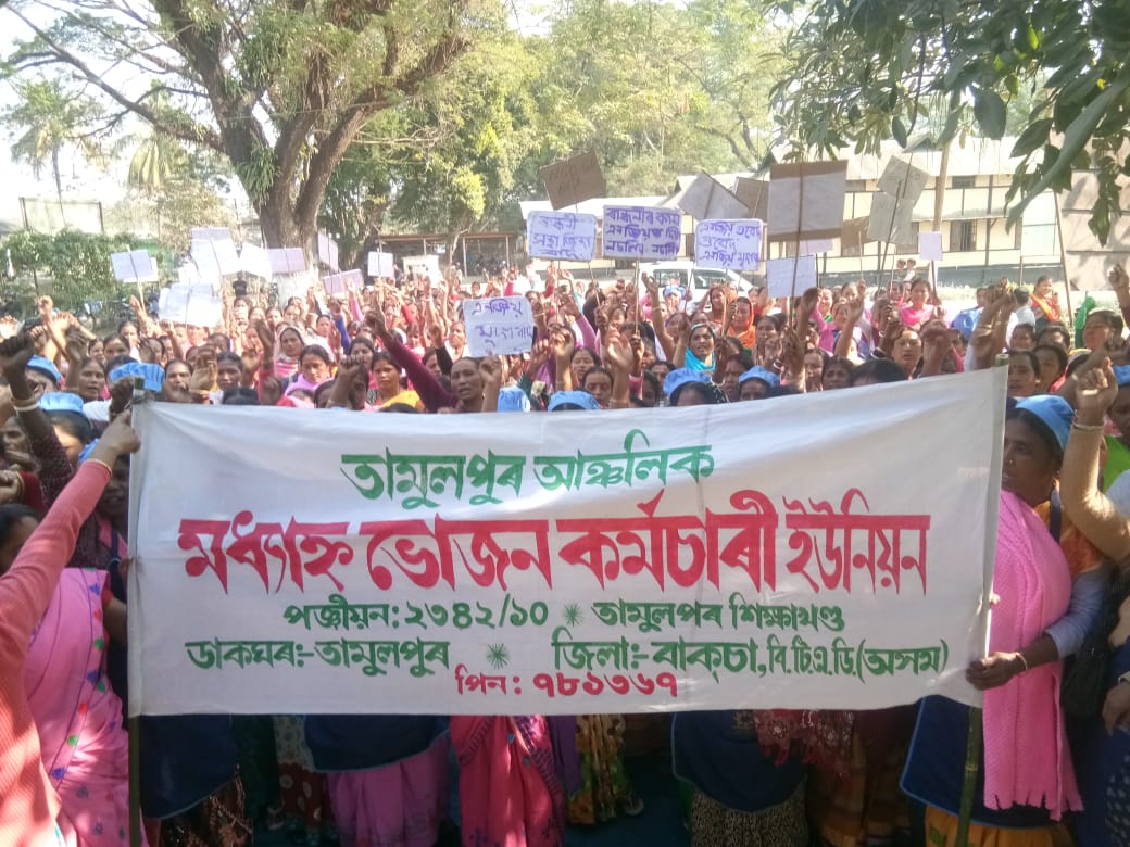 তামুলপুৰ, সংবাদ ৩৬৫, ২২ জানুৱাৰী: মধ্যাহ্ন ভোজন আঁচনিটো এন জি ওক নিদিয়াৰ বাবে মংগলবাৰে দিনৰ এঘাৰ বজাৰ পৰা এক বজালৈ এক তিনিঘন্টীয়া প্ৰতিবাদী কাৰ্যসূচী ৰূপায়ণ কৰে বাক্সা জিলাৰ তামুলপুৰ শিক্ষা খণ্ডৰ অন্তৰ্গত তামুলপুৰ আঞ্চলিক মধ্যাহ্ন ভোজন কৰ্মচাৰী ইউনিয়নে। তামুলপুৰ শিক্ষা খণ্ডৰ কাৰ্য্যালয়ৰ সন্মুখত ৰূপায়ণ কৰা প্ৰতিবাদকাৰীসকলে এন জি ও গো বেক, আমাৰ কাম আমাক লাগিবই, তেজপিয়া এন জি ও হুঁচিয়াৰ, তামুলপুৰ আঞ্চলিক মধ্যহ্ন ভোজন কৰ্মচাৰী জিন্দাবাদ, খেদ ঔ খেদ এন জি ও খেদ, দুখীয়া ৰান্ধনীৰ পেটৰ ভাত কাঢ়িখোৱা এন জিও গো বেক আদি শ্লোগানেৰে তামুলপুৰ শিক্ষা খণ্ডৰ কাৰ্যালয় উত্তাল কৰি তোলে। উল্লেখযোগ্য যে ২০০৫ চনৰ পৰা বৰ্তমানলৈ ৰান্ধনী সকলে কাম কৰি আছে তেনেস্থলত মধ্যাহ্ন ভোজন আঁচনিটো এন জি ওক নিয়াৰ বাবে তামুলপুৰ শিক্ষাখণ্ডৰ শিক্ষা বিষয়াৰ জৰিয়তে অসমৰ মুখ্যমন্ত্ৰীলৈ এখন স্মাৰক পত্ৰ প্ৰেৰণ কৰে।