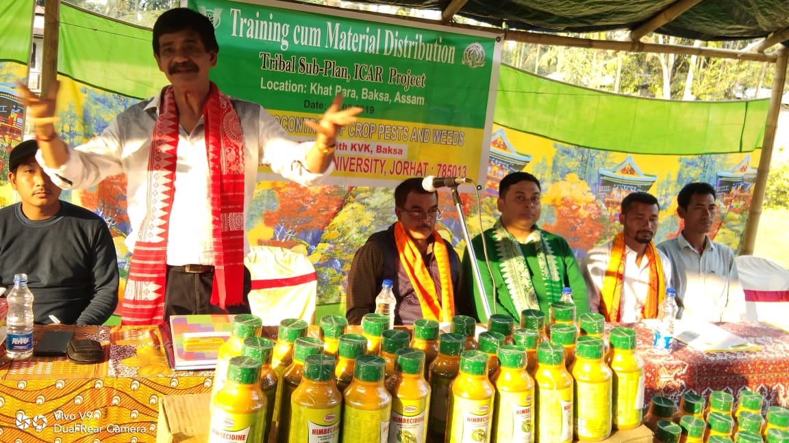 তামুলপুৰ, সংবাদ ৩৬৫, ৬ ফেব্ৰুৱাৰী: ভাৰতীয় কৃষি অনুসন্ধান সংস্থাৰ অধীনত সৰ্বভাৰতীয় সমন্বিত জৈৱিক নিয়ন্ত্ৰণ অনুসন্ধান প্ৰকল্পৰ দ্বাৰা জনজাতীয় উপ-যোজনাৰ পৃষ্ঠপোষকতাত বাক্সা জিলা কৃষি বিজ্ঞান কেন্দ্ৰৰ সহযোগত তামুলপুৰ মকুমাৰ খাটপাৰাত “সমন্বিত জৈৱিক নিয়ন্ত্ৰণ ” শীৰ্ষক প্ৰশিক্ষন শিবিৰ এটি অনুষ্ঠিত হৈ যায় ৷ খাটপাৰা গাঁৱৰ থুলুংগা পথাৰ পৰিচালনা সমিতিৰ সভাপতি মনোজ বড়োৰ সঞ্চালনাত অনুষ্ঠিত হোৱা কৃষক প্ৰশিক্ষনত অসম কৃষি বিশ্ববিদ্যালয়ৰ পতংগ তত্ত্ব বিভাগৰ মুখ্য কৃষি বিঞ্জানী ড° দিলীপ কুমাৰ শইকীয়া, বিঞ্জানী ৰুদ্ৰ নাৰায়ন বৰকাকতি, বাক্সা জিলা কৃষি বিজ্ঞান কেন্দ্ৰৰ কৃষি বিজ্ঞানী সুনীল ভট্টাচাৰ্য উপস্থিত থাকি কৃষক সকলে খেতিপথাৰত জৈৱিক কৃষি পদ্ধতি, জৈৱিক কীট নাশকৰ ব্যাৱহাৰ, শস্য পথাৰত কীট পতংগৰ অনুসন্ধান আৰু ৰোগ নিয়ন্ত্ৰণ কৰা, কেনেকৈ ইয়াক প্ৰতিৰোধ কৰিব পাৰি তাৰ ওপৰত বহলায় কয় ৷ আনহাতে কৃষক সকলে নিম গছৰ পৰা কেনেকৈ জৈৱিক কীট নাশক তৈয়াৰ কৰি কেনেকৈ শস্যত জৈৱিক ভাৱে কীট পতংগ নাশক হিচাবে ব্যবহাৰ কৰিব পাৰি তাৰ ওপৰত প্ৰশিক্ষন দিয়ে ৷ খাটপাৰা গাঁৱৰ কৃষক সকলেও বেঙেনা, জিকা , ভোল আদি শস্যৰ কীট , পতংগ আৰু বিভিন্ন ৰোগ সম্পৰ্কত পোৱা সমস্যাসমুহৰ বিষয়ে কোৱাত কৃষি বিজ্ঞানী সকলে ইয়াৰ নিৰুপায় সম্পৰ্কত বহলায় কয় ৷ আনকি কৃষক সকলে বীজ শোধন সম্পৰ্কতো প্ৰশিক্ষন দিয়ে বুধবাৰৰ প্ৰশিক্ষনত। খাটপাৰা গাঁৱৰ শতাধিক কৃষক উপস্থিত থাকি জৈৱিক কৃষি পদ্ধতি আৰু জৈৱিক কীট নিয়ন্ত্ৰন সম্পৰ্কত প্ৰশিক্ষন লাভ কৰে ৷ শিবিৰৰ অন্তত পঞ্চাশ গৰাকে কৃষক সকলৰ মাজত স্প্ৰে মেচিন আৰু জৈৱিক কীটনাশকৰ সামগ্ৰীও বিতৰন কৰে । ইপিনে কালি পাচঁ ফেব্ৰুৱাৰীত কচুকাটাতো আন এটি প্ৰশিক্ষন শিবিৰ অনুষ্ঠিত কৰাৰ লগতে পঞ্চাশ গৰাকী কৃষকৰ মাজত স্প্ৰে মেচিন আৰু জৈৱিক কীটনাশক সামগ্ৰী বিতৰন কৰা হয় ৷