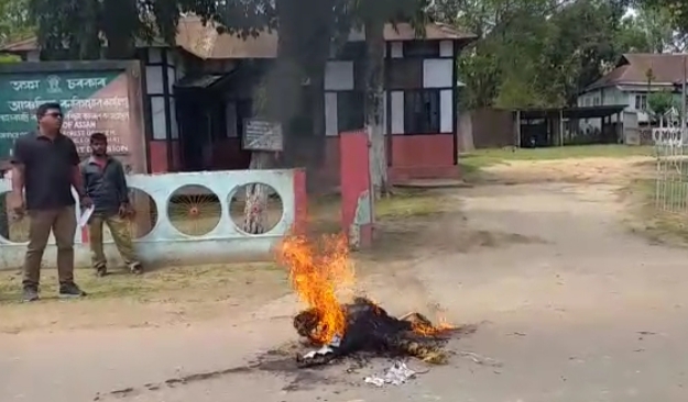 দক্ষিণ কামৰূপ ,সংবাদ ৩৬৫, ৮ এপ্ৰিল : লোহাৰঘাট বনাঞ্চলিক কাৰ্য্যালয়ৰ সন্মুখত মুখ্যমন্ত্ৰীৰ সৰ্বানন্দ সোনোৱালৰ প্ৰতিমূৰ্তি দাহ । বৰৰদুৱাৰ আঞ্চলিক ৰাভা ছাত্ৰ সন্থাই দাহ কৰে মুখ্যমন্ত্ৰী সোনোৱালৰ প্ৰতিমূৰ্তি ।