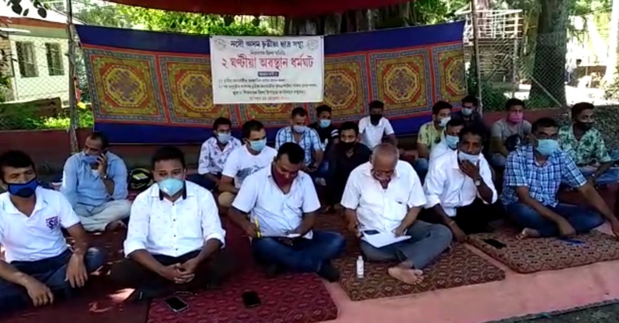 সদৌ অসম চুতীয়া ছাত্ৰ সন্থাৰ শিৱসাগৰ জিলা সমিতিৰ উদ্যোগত শনিবাৰে শিৱসাগৰ জিলা উপায়ুক্তৰ কাৰ্যালয়ৰ সন্মুখত ২ ঘন্টীয়া অৱস্থান ধৰ্মঘট কাৰ্যসূচী ৰূপায়ণ। প্ৰতিটো ৰাজনৈতিক দলে বিভিন্ন সময়ত চুতীয়া জনগোষ্ঠীক কেৱল এটা ভোট বেংক হিচাপে ব্যৱহাৰ কৰা বুলি অভিযোগ উত্থাপন কৰিছে প্রতিবাদকাৰী সকলে।