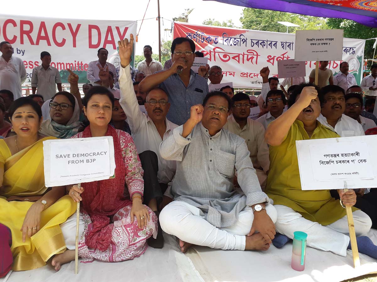 গুৱাহাটী, সংবাদ ৩৬৫, ১৮ মেঃ মহানগৰী গুৱাহাটীৰ দীঘলীপুখুৰীৰ পাৰত অসম প্ৰদেশ কংগ্ৰেছ কমিটিৰ প্ৰতিবাদ। দীঘলীপুখুৰীৰ পাৰত কৰ্ণাটকত বিজেপিৰ চৰকাৰ গঠনৰ প্ৰতিবাদত কংগ্ৰেছৰ অৱস্থান ধৰ্মঘট। প্ৰতিবাদত কংগ্ৰেছ দলৰ শীৰ্ষ নেতা, প্ৰাক্তন মন্ত্ৰী আৰু কেইবাশ কৰ্মীয়ে অংশগ্ৰহণ কৰে। কৰ্ণাটকত বিজেপিক সৰ্ববৃহৎ দল হিচাপে চৰকাৰ গঠন কৰিবলৈ দিয়াৰ পৰিবৰ্তে মণিপুৰ, গোৱা আৰু মেঘালয়ত কংগ্ৰেছ সৰ্ববৃহৎ দল হোৱাৰ পিছতো চৰকাৰ গঠন কৰিবলৈ নোপোৱাটো গণতন্ত্ৰৰ হত্যা বুলি অভিযোগ কৰে কংগ্ৰেছ দলে নেতা কৰ্মীয়ে। প্ৰতিবাদত অংশগ্ৰহণ কৰি অসম প্ৰদেশ কংগ্ৰেছ কংগ্ৰেছ কমিটিৰ সভাপতি ৰিপুন বৰাই মন্তব্য প্ৰকাশ কৰে যে বিজেপি কৰ্ণাটক নিৰ্বাচনত বৃহৎ দল যদিও চৰকাৰ গঠনৰ বাবে প্ৰয়োজনীয় বিধায়ক বিজেপিৰ নাই, কংগ্ৰেছ আৰু জেডি (এছ) মিলিত হৈ চৰকাৰ গঠন কৰিবলৈ সক্ষম। বিজেপিক যদি বৃহৎ দল হিচাপে চৰকাৰ গঠন কৰিবলৈ দিয়া হৈছে তেন্তে মণিপুৰ, মেঘালয় আৰু গোৱাত কংগ্ৰেছ বৃহৎ দল হোৱাৰ পিছতো কয় বিজেপিক চৰকাৰ গঠন কৰিবলৈ দিয়া হল বুলি প্ৰশ্ন কৰে। কংগ্ৰেছৰ সভাপতি গৰাকীয়ে কয় যে বৰ্তমান দেশৰ গণতন্ত্ৰ সংকটত আছে, গণতন্ত্ৰ ৰক্ষা বাবে আমি সকলো ওলাই আহিব লাগিব। কংগ্ৰেছৰ গণতন্ত্ৰ ৰক্ষা প্ৰতিবাদ কেইবাশ কংগ্ৰেছ কৰ্মীয়ে নৰেন্দ্ৰ মোদী মূর্দাবাদ, বিজেপি মূর্দাবাদ, গণতন্ত্ৰ ৰক্ষা কৰক, নৰেন্দ্ৰ মোদীয়ে গণতন্ত্ৰক হত্যা কৰিছে শ্লোগানেৰে পৰিবেশ উত্তাল কৰি তোলে।
