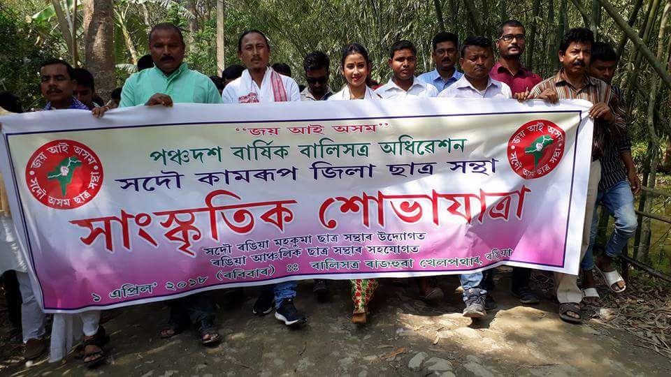 ৰঙিয়া, সংবাদ৩৬৫, ১ এপ্ৰিল: কামৰূপ জিলা ছাত্র সন্থাৰ পঞ্চদশ বাৰ্ষিক অধিবেশন দেওবাৰৰ পৰা ৰঙিয়াৰ বালিসত্ৰত দুদিনীয়া কাৰ্যসূচীৰে আৰম্ভ হৈছে। পঞ্চদশ বাৰ্ষিক অধিবেশন উপলক্ষে দেওবাৰে পুৱা পতাকা উত্তোলন, শ্বহীদ তৰ্পণ, বৃক্ষ ৰোপণ কাৰ্যসূচীৰ পিছতেই উলিওৱা হয় এক বৰ্ণিল সাংস্কৃতিক শোভাযাত্ৰা। সত্ৰীয়া সংস্কৃতিৰ ভাৱধাৰাৰে চালিত পুণ্যভূমি বালিসত্ৰত কেইবাহাজাৰ লোকে অংশগ্ৰহণ কৰা বাৰেৰহণীয়া ছাত্র সন্থাৰ সাংস্কৃতিক শোভাযাত্ৰাত অভিনেত্ৰী বৰষাৰাণী বিষয়া আৰু অভিনেতা বিপুল ৰাভাৰ উপস্থিতিয়ে এক অন্য মাত্ৰা প্ৰদান কৰে। অভিনেত্ৰী বৰষাৰাণী বিষয়া আৰু অভিনেতা বিপুল ৰাভাই ৰঙিয়াৰ বালিসত্ৰত কামৰূপ জিলা ছাত্ৰ সন্থাৰ পঞ্চদশ বাৰ্ষিক অধিবেশনৰ শোভাযাত্ৰা উদ্বোধনৰ কৰি বৃহত্তৰ অঞ্চলটো পৰিভ্ৰমণ কৰে। দুদিনীয়া কাৰ্যসূচীৰে আৰম্ভ হোৱা কামৰূপ জিলা ছাত্ৰ সন্থাৰ পঞ্চদশ বাৰ্ষিক অধিবেশন উপলক্ষে বৃহত্তৰ বালিসত্ৰ অঞ্চলটোত এক উৎসৱ মুখৰ পৰিবেশৰ সৃষ্টি হৈছে।