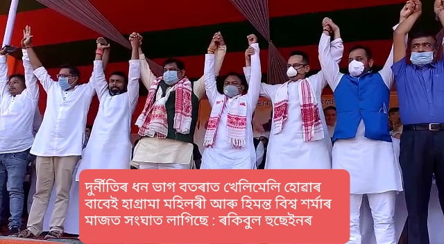 বিটিচিৰ পাঁচনৈ চেৰফাং সমষ্টিত কংগ্ৰেছৰ নিৰ্বাচনী সভাত অংশগ্ৰহন কৰি বিধায়ক ৰকিবুল হুছেইনৰ বিস্ফোৰণ। দুৰ্নীতিৰ ধন ভাগ বতৰাত খেলিমেলি হোৱাৰ বাবেই হাগ্ৰামা মহিলৰী আৰু হিমন্ত বিশ্ব শৰ্মাৰ মাজত সংঘাত লাগিছে বুলি মন্তব্য ৰকিবুল হুছেইনৰ।