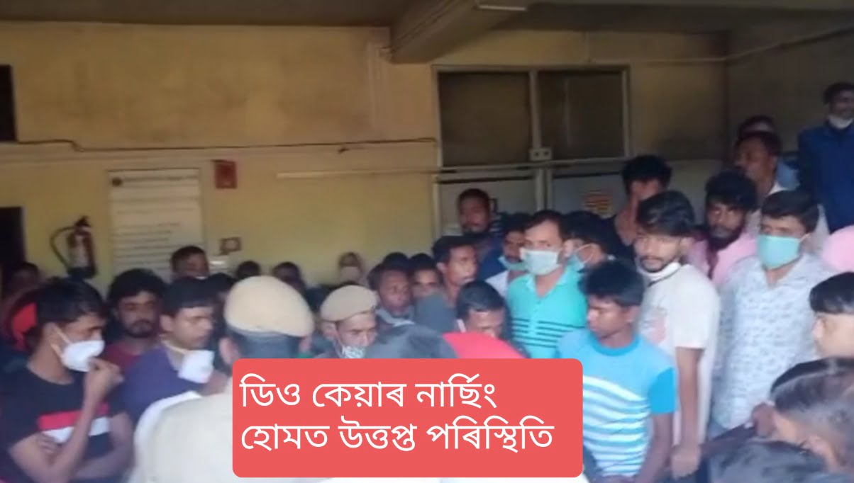 মঙলবাৰে নগাঁৱৰ ডিও কেয়াৰ নাৰ্ছিং হোমত চিকিৎসাৰ বাবে কামপুৰ কচোৱাৰ পৰা আহিছিল এগৰাকী মহিলা ৰোগী। মহিলা ৰোগী গৰিকীক এক্স’ৰে কৰাৰ বাবে এক্স’ৰে ৰুমত প্ৰৱেশ কৰাৰ পিছত মহিলা গৰাকীয়ে স্বামীক এক গুৰুত্বৰ অভিযোগ কৰে। অভিযোগ অনুসৰি এক্স’ৰে ৰুমৰ বাহিৰত মহিলা ৰোগী গৰাকী পৰি যাব ধৰোঁতে ডিও কেয়াৰ নাৰ্চিং হোমৰ কৰ্মচাৰী অমূল্য দেৱনাথ নামৰ এজন কৰ্মচাৰীয়ে মহিলা গৰাকীৰ ব্যক্তিগত অংশত হাত দিয়ে। এই কথাত ক্ষুণ্ণ হৈ মহিলা ৰোগী গৰাকীৰ স্বামীয়ে অমূল্য দেৱনাথৰ লগত মাৰপিত কৰে। আনফালে ডিও কেয়াৰ নাৰ্চিং হোমৰ স্বত্বাধিকাৰ ফৰিদুল ইছলাময়ে এই ঘটনাক গাপ দিয়াৰ চেষ্টা কৰা পৰিলক্ষিত হয়।