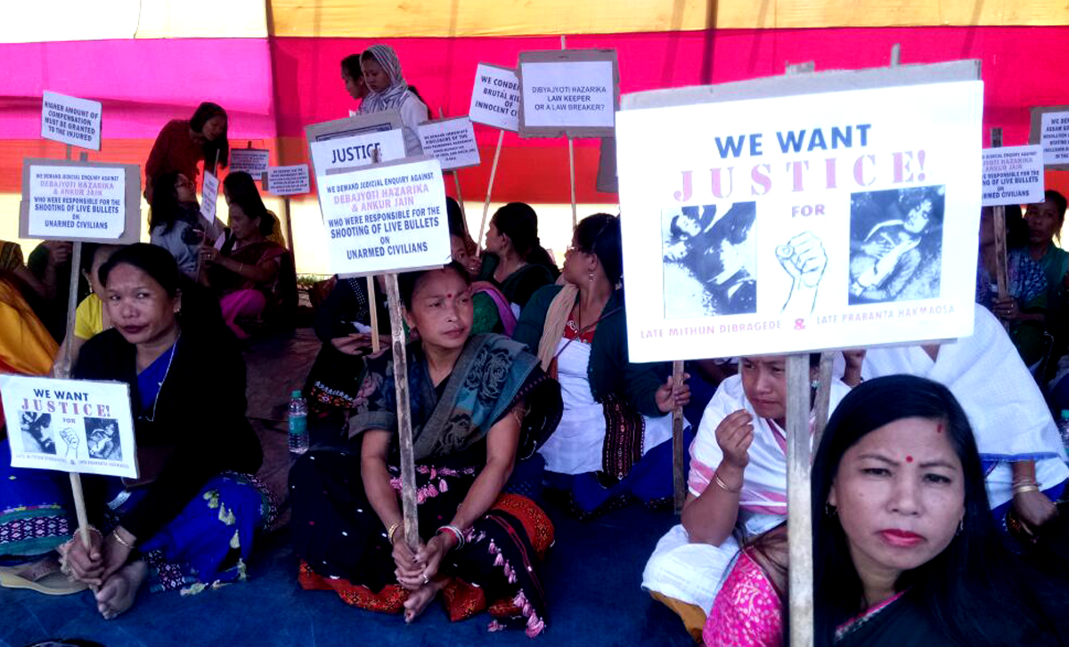 গুৱাহাটী, সংবাদ ৩৬৫, ২০ ফেব্ৰুৱাৰীঃ অসম বিধানসভা চলি থকা সময়তে মঙলবাৰে মহানগৰীৰ লাষ্ট গেটত প্ৰতিবাদত বহিল কেইবাটাও ডিমাছা মহিলা সংগঠন। যোৱা ২৫ জানুৱাৰীত ডিমা হাছাও জিলাৰ মাইবঙত প্ৰতিবাদকাৰী সকলৰ ওপৰত আৰক্ষীয়ে কৰা গুলীচলনাৰ উপযুক্ত তদন্ত আৰু নগা চুক্তি ৰাজহুৱা কৰাৰ দাবীত লাষ্ট গেটত ডিমাছা মহিলা সকলে এক ধৰ্ণা কাৰ্যসূচী ৰূপায়ন কৰে। কেইবাশ ডিমাছা মহিলাই বেনাৰ পোষ্টৰ লৈ লাষ্ট গেটত ডিমা হাছাওৰ মাইবঙত আৰক্ষীয়ে প্ৰতিবাদকাৰী সকলৰ ওপৰত কৰা গুলী চলনাৰ উপযুক্ত তদন্তৰ দাবী কৰে। প্ৰতিবাদকাৰী সকলে আৰক্ষীৰ গুলীত নিহত হোৱা লোক দুজনক ন্যায় প্ৰদান কৰাৰ লগতে আহত ব্যক্তিসকলক উপযুক্ত ক্ষতিপূৰণ দিয়াৰ জনায়। প্ৰতিবাদী সকলে অতি শীঘ্ৰে নগা চুক্তি ৰাজহুৱা কৰাৰো দাবী জনায়। উল্লেখ্য যে, ২৫ জানুৱাৰীত ডিমা হাছাও জিলাৰ মাইবঙত নগা চুক্তিৰ ওপৰত ভিত্তি কৰি ডিমা হাছাও জিলাৰ ভূমি নাগালিমত অন্তৰ্ভুক্ত হোৱাৰ আকাংক্ষাত এক প্ৰতিবাদ ৰূপায়ন কৰা হৈছিল যত আৰক্ষীয়ে প্ৰতিবাদকাৰী সকলৰ ওপৰত গুলীচালনা কৰাত দুজন লোক নিহত হোৱাৰ লগতে কেইবাজনো লোক আহত হৈছিল।
