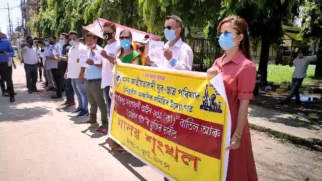 বিগত কিছুদিন ধৰি ৰাজ্যত তীব্রতৰ হৈ উঠিছে কৃষক নেতা অখিক গগৈৰ মুক্তিৰ দাবী। কৃষক নেতা গৰাকীৰ মুক্তিৰ লগতে ৰাজ্যত পুনৰ সবল হৈ উঠিছে নাগৰিকত্ব সংশোধনী আইন বাতিল দাবীও। শুকুৰবাৰে তিনিচুকীয়া চহৰৰ জি এন বি পথত অসম জাতীয়তাবাদী যুৱ-ছাত্ৰ পৰিষদৰ তিনিচুকীয়া আঞ্চলিক সমিতিৰ উদ্যোগত নাগৰিকত্ব সংশোধনী আইন বাতিলৰ লগতে কৃষক নেতা অখিক গগৈৰ মুক্তিৰ দাবীত পৰিষদৰ সদস্য সকলে সামাজিক ব্যৱধান মানি চলি মানৱ শৃংখল কাৰ্যসূচী ৰূপায়ন কৰে। প্ৰতিবাদকাৰী সকলে নাগৰিকত্ব সংশোধনী আইন বাতিল কৰক, বিজেপি চৰকাৰ হায় হায়, অখিল গগৈক মুক্তি দিয়ক আদিকে ধৰি বিভিন্ন শ্লোগানেৰে ৰাজপথ উঠিল কৰি তোলে। পৰিষদৰ এই মানৱ শৃংখল কাৰ্যসূচীত উপস্থিত থাকি পৰিষদৰ কেন্দ্ৰীয় সমিতিৰ সাংগঠনিক সম্পাদক কণ গগৈয়ে কয় যে নাগৰিকত্ব সংশোধনী আইনৰ বিৰুদ্ধে পৰিষদে সুদীৰ্ঘ দিন ধৰি আন্দোলন কৰি আহিছিল যদিও কৰ’ণা ভাইৰাছৰ ভয়াবহতাৰ প্ৰতি লক্ষ্য ৰাখি এই আন্দোলন স্তিমিত কৰিছিল কিন্তু দেশ আৰু জাতিৰ স্বাৰ্থত পুনৰ এই আন্দোলন জোৰদাৰ ৰূপত আগবঢ়াই নিয়া হ’ব। আজিৰ এই মানৱ শৃংখল কাৰ্যসূচী গ্ৰহণ কৰি আমি পুনৰ নাগৰিকত্ব সংশোধনী আইনৰ বিৰুদ্ধে ৰাজপথত ওলাই আহিছো। নাগৰিকত্ব সংশোধনী আইনে অসমীয়া জাতিক ভয়াবহ ভাৱে ধংস কৰিব সেয়েহে এই আইন মানি লোৱাৰ কোনো প্ৰশ্মই নাহে বুলিও উল্লেখ কৰে পৰিষদৰ কেন্দ্ৰীয় সমিতিৰ সাংগঠনিক সম্পাদক কণ গগৈয়ে।