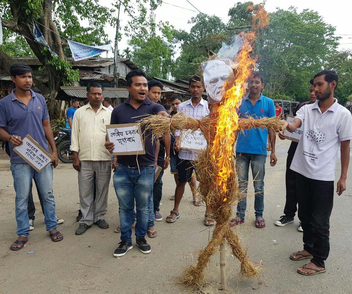 ডিগবৈ সংবাদতা বিজয় সূত্ৰধাৰ,সংবাদ ৩৬৫, ২ মেঃ আহোম ৰাজত্বৰ ঐতিহ্যমণ্ডিত প্ৰাচীন কৃতিচিহ্ন সমূহ কেন্দ্ৰীয় চৰকাৰে বহিৰাগত প্ৰতিষ্ঠানক গতাবলৈ লোৱা সিদ্ধান্তৰ বিৰুদ্ধে বুধবাৰে উত্তাল হৈ পৰে তৈলনগৰী ডিগবৈ৷ ডিগবৈৰ টিংৰাইত বুধবাৰে দিনৰ ভাগত টাই আহোম যুৱ পৰিষদ, অসম অনুসুচিত জাতি যুৱ ছাত্ৰ সন্থা আৰু জাতীয়তাবাদী যুৱ ছাত্ৰ পৰিষদে ৩৮ নং ৰাষ্ট্ৰীয় ঘাই পথত প্ৰধান মন্ত্ৰী নৰেন্দ্ৰ মোদীৰ প্ৰতিকৃৰ্তি দাহ কৰি উত্তাল প্ৰতিবাদ সাব্যস্থ কৰে৷ উল্লেখ যে, কাজিৰঙা ৰাষ্ট্ৰীয় উদ্যান, ৰংঘৰ, কাৰেংঘৰকে ধৰি ৰাজ্যৰ বিভিন্ন প্ৰাচীন কৃতি সমূহ কেন্দ্ৰীয় চৰকাৰে বহিৰাগত প্ৰতিষ্ঠানক গতাই দিয়াৰ সিদ্ধান্তৰ বিৰুদ্ধে প্ৰতিবাদ সাব্যস্ত কৰি পৰিবেশ উত্তাল কৰি তোলে বিভিন্ন দল সংগঠনে। প্ৰতিবাদকাৰী সকলে কেন্দ্ৰীয় চৰকাৰ মূৰ্দাবাদ, নৰেন্দ্ৰ মোদী মূর্দাবাদ শ্লগানৰে পৰিস্থিতি উত্তপ্ত কৰি তোলে৷ অসম অনুসুচিত যুৱ ছাত্ৰ সন্থাৰ টিংৰাই আঞ্চলিকৰ সভাপতি পূৰ্ণকান্ত তামূলীয়ে কয় যে, অসমৰ ঐতিৰ্য্য বহনকাৰী প্ৰাচীন কৃতিচিহ্ন সমূহ কেন্দ্ৰীয় চৰকাৰে বহিৰাগত প্ৰতিষ্ঠানক প্ৰদান কৰিবলৈ লোৱা সিদ্ধান্তক কেতিযাও গ্ৰহন কৰা নহয়৷ চৰকাৰে যদি এই সিদ্ধান্ত বাতিল নকৰে তেন্তে অনাগত দিনত জংগী আন্দোলন গঢ়ি তোলা হব বুলি হুংকাৰ প্ৰদান কৰে।