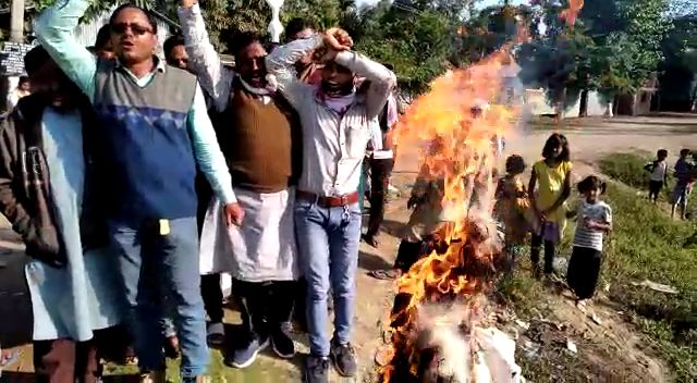 বকো, সংবাদ ৩৬৫, ২১ ডিচেম্বৰ: বকোৰ বগুৰীগুৰিত শুক্ৰবাৰে লোক সম্পৰ্ক সেৱাৰ উদ্যোগত বকোৰ বগুৰীগুৰিত কংগ্ৰেছ সমৰ্থকে বিজেপি গ’বেগ, বিজেপি মুৰ্দাবাদ, ৰঞ্জিত দাস মুৰ্দাবাদ, নৰেন্দ্ৰ মোদী হায় হয়, বিজেপি চৰকাৰ হায় হায় আদি ধ্বনি দি ৰঞ্জিত দাসৰ পুত্তলিকা দাহ কৰে ৷ ছমৰীয়া ব্লক কংগ্ৰেছ লোক সম্পৰ্ক সেৱাৰ কো-অৰ্ডিনেটৰ দিলবৰ হুছেইনে ৰঞ্জিত দাসক নকল কৰা নেতা আৰু ৰঞ্জিত দাসে নকল কৰি পৰীক্ষাত উত্তীৰ্ণ হৈছে বুলি ৰঞ্জিত দাসৰ বিৰোধীতা কৰে। লগতে বিজেপিক জালিয়াতি পাৰ্টী বুলিও কয় দিলবৰ হুছেইনে ৷ সভাপতি ৰঞ্জিত দাসে ৰাহুল গান্ধীক ননচেঞ্চ বুলি মন্তব্য কৰিছিল। আৰু তাৰ পাছতেই শুক্ৰবাৰে বকোৰ বগুৰীগুৰিত কংগ্ৰেছ সমৰ্থকসকলে তেওঁৰ প্ৰতিমূৰ্তি দাহ কৰে।
