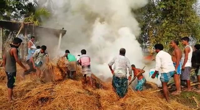 বঙাইগাঁও, সংবাদ ৩৬৫, ২৭ ডিচেম্বৰ: বঙাইগাঁও জিলাৰ মেৰেৰচৰ আৰক্ষী থানাৰ অন্তৰ্গত শিমলাবাৰী দ্বিতীয় খণ্ড গাঁৱত বৃহস্পতিবাৰে দুপৰীয়া এক ভয়াৱহ অগ্নিকাণ্ড সংঘটিত হয়। ছাহাজুল ইছলাম নামৰ এজন ব্যক্তিৰ এটা গোহালি ঘৰ আৰু এটি খেৰৰ পজা সম্পূৰ্ণৰূপে ভস্মীভূত হয় এই অগ্নিকাণ্ডত। বৰ্তমানলৈ এই অগ্নিকাণ্ডৰ কাৰণ জানিব পৰা হোৱা নাই যদিও অগ্নিকাণ্ড সংঘটিত হোৱাৰ লগে লগে স্থানীয় ৰাইজৰ তৎপৰতাত জুই নিৰ্বাপন কৰা হয়। ইফালে কলগাছিয়া অগ্নিনিৰ্বাপক বাহিনীক খবৰ দিয়াৰ পিছতো অগ্নিনিৰ্বাপক বাহিনী সময়মতে উপস্থিত হ’ব পৰা নাই বুলি জানিবলৈ দিয়ে। এই অগ্নিকাণ্ডত লক্ষাধিক টকাৰ ক্ষতি হৈছে যদিও ৰাইজে সময়মতে জুই নিৰ্বাপন কৰাৰ বাবে আন কেইবাটাও পৰিয়ালৰ ঘৰ-বাৰী অগ্নিকাণ্ডৰ কবলৰ পৰা ৰক্ষা পৰে।