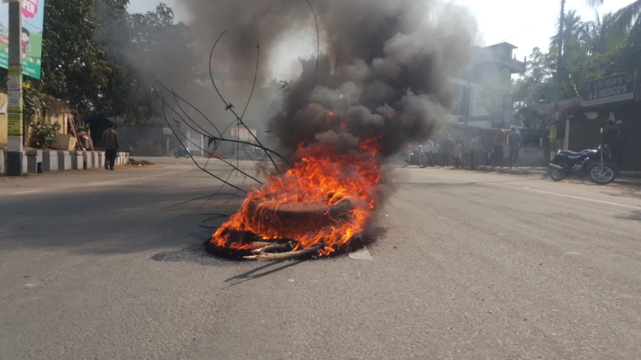 গুৱাহাটী, সংবাদ ৩৬৫, ৮ জানুৱাৰী: জাতিধ্বংসী নাগৰিকত্ব সংশোধনী বিধেয়ক বাতিলৰ দাবীত আছুৱে আহ্বান জনোৱা ১১ ঘন্টীয়া অসম বন্ধৰ সৰ্বাত্মক প্ৰভাৱ সমগ্ৰ ৰাজ্যজুৰি পৰিলক্ষিত হয়। বন্ধৰ প্ৰতিবাদত স্তব্ধ হৈ পৰে জনজীৱন। ১১ ঘন্টীয়া অসম বন্ধত বন্ধ সমৰ্থকসকলৰ টায়াৰ জ্বলাই, বিজেপিৰ কাৰ্য্যালয় ভঙাৰ লগতে যান-বাহন ভাঙি হিংসাত্মক পৰিস্থিতিৰ সৃষ্টি কৰে। চৰকাৰ বিৰোধী শ্ল’গানৰে প্ৰতিবাদকাৰীসকলে উত্তাল কৰি তোলে ৰাজপথ৷ ৰাজ্যৰ ভিন্ন প্ৰান্তত ব্যৱসায়িক প্ৰতিষ্ঠান, চৰকাৰী, বে-চৰকাৰী কাৰ্যালয়ৰ লগতে সকলো ধৰণৰ যান-বাহনৰ চলাচল সম্পূৰ্ণৰূপে ব্যাহত হৈ পৰে। সমগ্ৰ ৰাজ্যৰ লগতে মহানগৰীত দেখা গ’ল অসম বন্ধৰ সৰ্বাত্মক প্ৰভাৱ। মহানগৰীৰ উজানবজাৰত বন্ধ সমৰ্থকে পথত ৰখাই থোৱা কেইবাখনো বানহত আক্ৰমণ কৰে বন্ধ সমৰ্থকে। মহানগৰীৰ জালুকবাৰী, ধাৰাপুৰ, আজাৰাত বন্ধৰ সৰ্বাত্মক প্ৰভাৱ দেখা যায়।পুৱাৰে পৰা ব্যৱসায়িক প্ৰতিষ্ঠানসমূহ বন্ধ পৰিলক্ষিত হয়। ধাৰাপুৰৰ ৩৭ নম্বৰ ৰাষ্ট্ৰীয় ঘাইপথত চলাচল কৰা বাহনত বন্ধ সমৰ্থকে শিলগুটি নিক্ষেপ কৰাৰ ফলত আহত হয় এগৰাকী যুৱতী। এই অসম বন্ধৰ সৰ্বাত্মক ৰূপ প্ৰতিফলিত হয় গোলাঘাট চহৰতো। নগৰখনৰ লগতে দাঁতিকাষৰীয়া অঞ্চলতসমূহতো বন্ধৰ সমৰ্থকে টায়াৰ জ্বলাই পথ অৱৰোধকে ধৰি বিভিন্ন পন্থাৰে প্ৰতিবাদ সাব্যস্ত কৰে। বন্ধ সমৰ্থকে গোলাঘাট জিলা বিজেপি কাৰ্যালয়ৰ চৌহদত প্ৰৱেশ কৰি কাৰ্যালয়টোৰ বাহিৰৰ আচবাব ভাঙি লণ্ডভণ্ড কৰে। তিনিচুকীয়া চহৰৰ মাজমজীয়াত বিজেপিৰ পোষ্টাৰ-বেনাৰ দাহ কৰি বন্ধ সমৰ্থকৰ উত্তাল প্ৰতিবাদ। ওদালগুৰিৰ কবিৰালীতো টায়াৰ জ্বলাই প্ৰতিবাদ কৰে আছুই। পলাশবাৰীত ব্যক্তিগত প্ৰতিষ্ঠানত বন্ধ সমৰ্থকে খিৰিকীৰ আইনা ভাঙি চূৰমাৰ কৰি উত্তপ্ত পৰিস্থিতিৰ সৃষ্টি হয় কৰে। ৰঙিয়াতো ৰাজপথত টায়াৰ জ্বলাই প্ৰতিবাদ সাব্যস্ত কৰে বন্ধ সমৰ্থকে। দোকান-পোহাৰ, অনুষ্ঠান-প্ৰতিষ্ঠান সকলো বন্ধ হৈ পৰে ৰঙিয়াত। মুঠৰ ওপৰত নাগৰিকত্ব সংশোধনী বিধেয়ক ২০১৬ৰ বিৰুদ্ধে মংগলবাৰে আছুয়ে আহ্বান জনোৱা ১১ঘন্টীয়া অসম বন্ধৰ সৰ্বাত্মক প্ৰভাৱ সমগ্ৰ ৰাজ্যতে প্ৰতিফলিত হয়। যাৰ ফলত উত্তাল হৈ পৰে সমগ্র অসম।