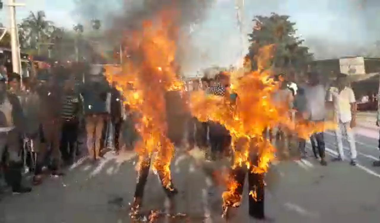 এই ক্ষেত্ৰত দীৰ্ঘ সময় পাৰ হৈ যোৱাৰ পাছতো অসমৰ গৃহ বিভাগ তথা বিশ্ব নাথ পুলিচ প্ৰশাসনে দোষীৰ বিৰুদ্ধে কোনো ধৰণৰ পদক্ষেপ গ্ৰহণ নকৰাৰ প্ৰতিবাদত মঙ্গলবাৰে বৰপেটা জিলাৰ জনীয়া তিনিআলিত অসমৰ গৃহ বিভাগৰ দায়িত্বত থকা মুখ্যমন্ত্ৰী সৰ্বানন্দ সোণোৱাল আৰু বিভিন্ন সময়ত সাম্প্ৰদায়িক মন্তব্যৰে পৰিবেশ অস্থিৰ কৰি ৰখা ৰাজ্যৰ বিত্তমন্ত্ৰী হিমন্ত বিশ্ব শৰ্মাৰ পুত্তলিকা দাহ কৰে।