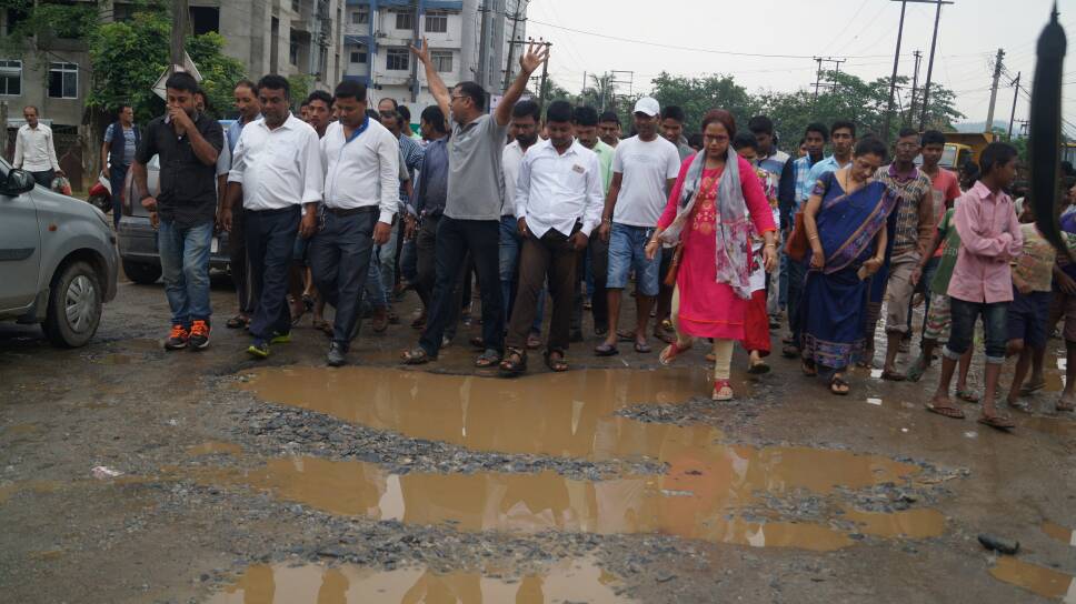 গুৱাহাটী, ২২ এপ্ৰিলঃ বৰ্ষাবিঘ্নিত বতৰত মহানগৰবাসী ওলাল ৰাজপথত প্ৰতিবাদ কৰিবলৈ৷ চৰকাৰৰ পৰিবৰ্তন হ’ল কিন্তু পৰিবৰ্তন নহ’ল মহানগৰীৰ৷ পৰিবৰ্ত্তন হ’ল বিধায়কৰ কিন্তু পৰিবৰ্ত্তন নহ’ল মহানগৰীৰ৷ নাৰেংগীৰ বিদ্ধস্ত ঘাইপথ মেৰামতি আৰু নলা-নৰ্দমা পৰিস্কাৰৰ দাবীত সদৌ অসম ছাত্ৰ সন্থা, অসম জাতীয়তাবাদী যুৱ ছাত্ৰ পৰিষদ, নাৰেংগী উন্নয়ন সমিতি, নাগৰিক সমিতিয়ে স্থানীয় ৰাইজৰ সহযোগত তীব্ৰ প্ৰতিবাদ সাব্যস্ত কৰে নাৰেংগী-চন্দ্ৰপুৰ সংযোগী পথত৷ প্ৰতিবাদকাৰীসকলে স্থানীয় বিধায়ক অতুল বৰা মুৰ্দাবাদ, জিএম চি মুৰ্দাবাদ আদি চৰকাৰ বিৰোধী শ্ল’গানেৰে চৌদিশ উত্তাল কৰি নাৰেংগী-চন্দ্ৰপুৰ সংযোগী ৩ নং ৰাজ্যিক ঘাইপথটো অৱৰোধ কৰে৷ সদ্য-ব্যস্তময় পথটো এনেদৰে দুই ঘন্টা ধৰি অৱৰোধ কৰাত অঞ্চলটোত তীব্ৰ যান-জঁটৰ সৃষ্টি হয়৷ দীৰ্ঘদিন ধৰি বিদ্ধস্ত হৈ থকা চন্দ্ৰপুৰ-নাৰেংগী সংযোগী ৰাজ্যিক ঘাইপথৰ এনে দুৰৱস্থাৰ ফলত বহু কেইটা দুৰ্ঘটনা সংঘটিত হৈছে৷ চৰকাৰক বাৰম্বাৰ এই পথটোৰ মেৰামতিৰ কাৰণে অৱগত কৰাৰ পিছতো চৰকাৰে কোনো গুৰুত্ব নিদিয়াত ৰাইজ ক্ষোভিত হৈ পৰে৷ ফলত উন্নয়নৰ সপোন দেখুৱাই গাদী দখল কৰা চৰকাৰখনৰ চকুত এই ঘাইপথটোৰ দুৰৱস্থা দেখুৱাবলৈ ৰাইজ নামিব লগা হয় ৰাজপথত৷
