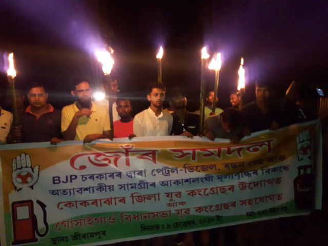 গোসাইগাঁও, সংবাদ ৩৬৫, ৯ ছেপ্টেম্বৰ: বিজেপি শাসিত চৰকাৰ খনে জনসাধাৰণক টুপী পিন্ধাই দৈনিক ইটোৰ পিছত সিটো বস্তুৰ মূল্যবৃদ্ধিয়ে জুৰুলা কৰিছে। পেট্ৰল-ডিজেল তথা অত্যাৱশ্যকীয় সামগ্ৰীৰ আকাশলংঘী মূল্যবৃদ্ধিৰ প্ৰতিবাদত কংগ্ৰেছ দলে আহ্বান জনোৱা ভাৰত বন্ধৰ সমৰ্থন আৰু ৰাইজক এই বন্ধ সফল কৰি তুলিবৰ বাবে ৰাইজক সজাগ কৰিবলৈ দেওবাৰে যুৱকংগ্ৰেছৰ উদ্যোগত শ্ৰীৰামপুৰত জোঁৰ সমদল উলিওৱা হয়।যুৱ কংগ্ৰেছৰ কোকৰাঝাৰ জিলা সমিতিৰ অৰ্ধশতাধিক কৰ্মীয়ে হাতত জোঁৰ আৰু প্ৰতিবাদি শ্ল’গান সম্বলিত প্লেকাৰ্ড লৈ শ্ৰীৰামপুৰ স্হিত হাতীধুৰা ব্লক কংগ্ৰেছৰ কাৰ্যালয়ৰ পৰা ৩১ নম্বৰ ৰাষ্ট্ৰীয় ঘাইপথৰ চাৰিআলি লৈ গৈ বিজেপি শাসিত কেন্দ্ৰীয় আৰু ৰাজ্য চৰকাৰৰ বিৰুদ্ধে ক্ষোভ উজাৰি স্হানীয় নেতৃত্বই সংক্ষিপ্ত ভাষণ আগবঢ়ায়। প্ৰধানমন্ত্ৰী নৰেন্দ্ৰ মোদীয়ে দেশবাসীক দিয়া প্ৰতিশ্ৰুতি ভংগ কৰাই নহয় দেশৰ অৰ্থনীতি আৰু সামাজিক ব্যৱস্হাত এক অস্হিৰতাৰ সৃষ্টি কৰিছে বুলি কয় প্ৰাক্তন মন্ত্ৰী তথা কংগ্ৰেছ দলৰ বিটিএডিৰ আহ্বায়ক সমিতিৰ সমন্বয়ক ৰাজেন্দ্ৰ মুছাহাৰীয়ে।কেন্দ্ৰীয় চৰকাৰৰ জনবিৰোধী নীতিৰ প্ৰতিবাদত ভাৰত বন্ধক পুৰ্ণ সমৰ্থন কৰিবলৈ ৰাইজলৈ বিনম্ৰ অনুৰোধ জনাইছে যুৱ কংগ্ৰেছৰ কোকৰাঝাৰ জিলা কমিটীৰ সভাপতি ছহৰ আলী সৰকাৰে।