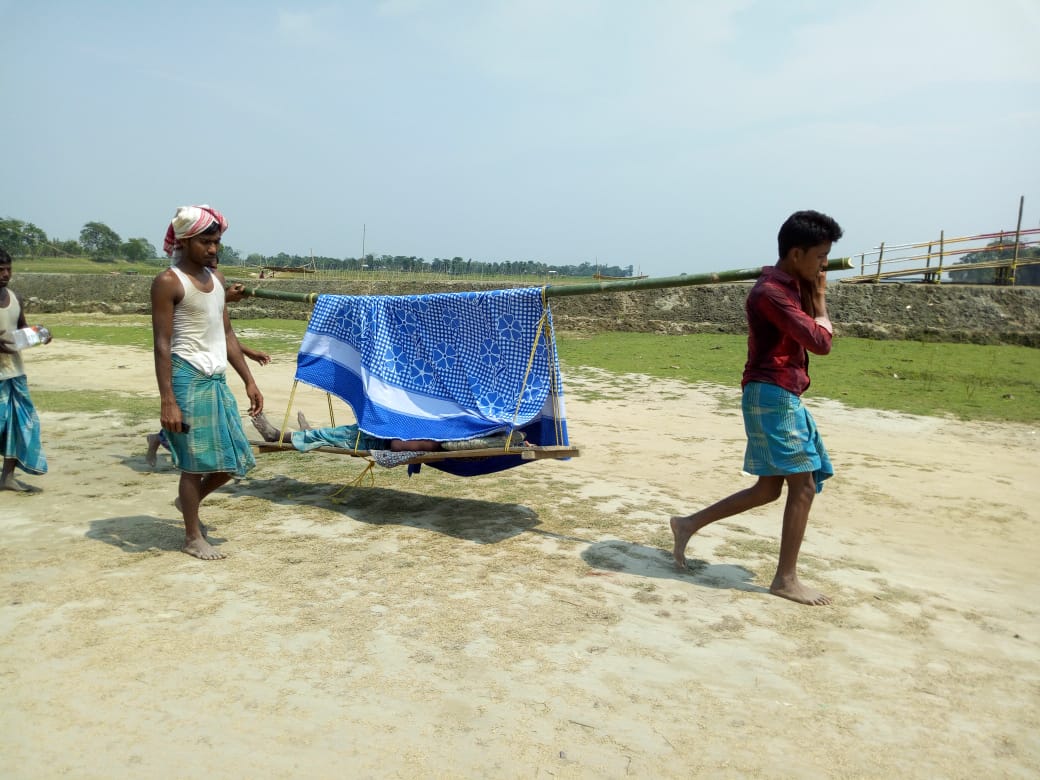 বাঁহৰ সাঙীৰে ৰোগীক এখন বাঁহৰ দলঙেৰে পাৰ কৰা হয় চিকিৎসালয়লৈ বুলি। প্ৰায় ৭/৮ কি মি পথ এনেদৰে ভাৰবান্দি কান্ধত কৰিয়েই লৈ যোৱা হয় ৰোগীক। মাজত পাৰ হব লগা হয় দুখনকৈ নদী। এই পৰিবেশ বিজেপি সাংসদ বিজয়া চক্ৰৱৰ্তীয়ে পোন্ধৰ বছৰ প্ৰতিনিধিত্ব কৰা সন্মানীয় গুৱাহাটী লোকসভা সমষ্টিৰ নগৰবেৰাৰ দৃশ্য। দক্ষিণ বৰপেটাৰ উক্ত চৰাঞ্চল আৰু কামৰূপ জিলাৰ বকো সমষ্টিৰ নগৰবেৰাৰ গ্ৰামাঞ্চল সমুহত নাই পৰ্যাপ্ত সুবিধাযুক্ত চিকিৎসালয়,নাই এম্বুলেঞ্চ ফলত এই অঞ্চলসমুহৰ ৰোগীক নিব লগীয়া হয় নগৰবেৰা স্বাস্থ্য কেন্দ্ৰলৈ।