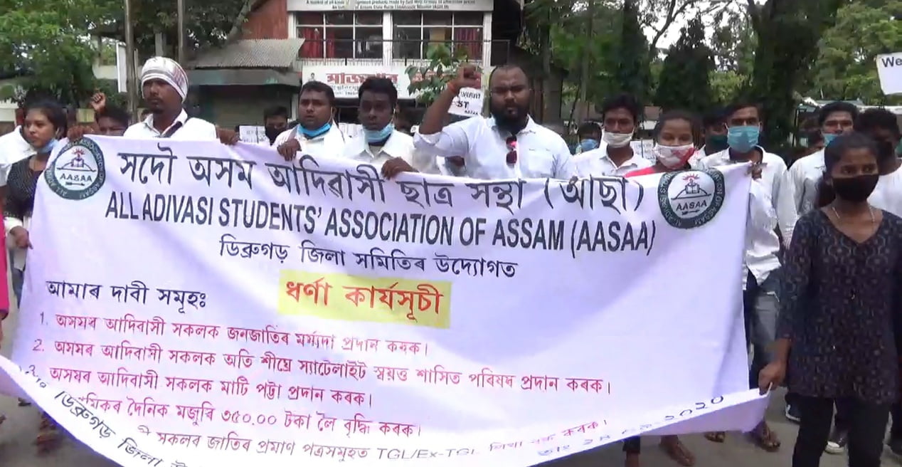 সদৌ অসম আদিবাসী ছাত্ৰ সন্থাৰ ডিব্ৰুগড় জিলা সমিতিয়ে ডিব্ৰুগড় উপায়ুক্ত কাৰ্যালয়ৰ সন্মুখত ধৰ্ণা কাৰ্যসূচী ৰূপায়ন কৰি বছৰ বছৰ ধৰি অসমৰ আদিবাসী জনগোষ্ঠীক চৰকাৰে বঞ্চনা কৰি অহা বুলি ক্ষোভ প্ৰকাশ কৰে। ইফালে ২০১৬ চনৰ অসম বিধানসভা নিৰ্বাচনৰ সময়ত দেশৰ প্ৰধানমন্ত্ৰী নৰেন্দ্ৰ মোডীয়ে আদিবাসীসকলক জনজাতিকৰণৰ মৰ্যাদা প্ৰদান কৰাৰ প্ৰতিশ্ৰুতি প্ৰদান কৰাৰ পিছতো আজিলৈকে এই প্ৰতিশ্ৰুতি কাৰ্যকৰী কৰিব নোৱাৰাত বিজেপি চৰকাৰক কঠোৰ ভাষাৰে সমালোচনা কৰে আছাই। ডিব্ৰুগড় জিলা উপায়ুক্ত কাৰ্যালয়ত ৰূপায়ন কৰা প্ৰতিবাদী ধৰ্ণা কাৰ্যসূচীত আছাই জনজাতিকৰণৰ উপৰি আদিবাসী জনগোষ্ঠীক ছেটেলাইট স্বায়ত্তশাসন প্ৰদান কৰা, চাহ শ্ৰমিকৰ দৈনিক মজুৰী ৩৫০ টকালৈ বৃদ্ধি কৰা, বছৰ বছৰ ধৰি ভোগ দখল কৰি অহা মাটিৰ পট্টা প্ৰদান কৰা, আদিবাসীসকলৰ জাতিৰ প্ৰমাণ পত্ৰত টী গাৰ্ডেন লেবাৰ বা এক্স টী গাৰ্ডেন লেবাৰ লিখা বন্ধ কৰি ৰাখিবলৈ দাবী জনাই জিলা উপায়ুক্তৰ জৰিয়তে মুখ্যমন্ত্ৰী সৰ্বানন্দ সোণোৱালৈ এখন দাবীসম্বলিত স্মাৰকপত্ৰও প্ৰেৰণ কৰে।