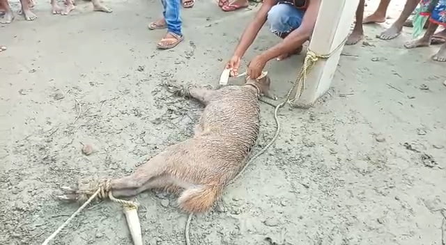 লাহৰীঘাটত ৰাইজে উদ্ধাৰ কৰিলে পহু। ব্ৰহ্মপুত্ৰ নদীত বোকাৰ মাজত আৱদ্ধ হৈ থকা পহুটোক ৰাইজে উদ্ধাৰ কৰি গতাই দিলে আৰক্ষীক।