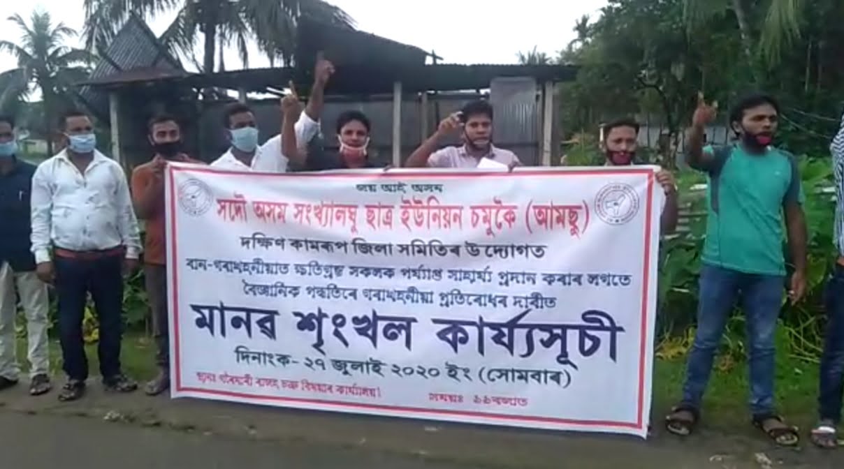 সমগ্ৰ ৰাজ্যতে সোমবাৰে সংখ্যালঘু ছাত্ৰ ইউনিয়ন চমুকৈ আমছু কৰ্মীয়ে মানৱ শৃংখল কাৰ্যসূচী ৰূপায়ন কৰি ৰাজ্যৰ বান সমস্যা প্ৰতিৰোধ আৰু বান সমস্যাক ৰাষ্ট্ৰীয় সমস্যা হিচাপে ঘোষণা কৰাৰ দাবী জনায়। উজনি-নামনিৰ বিভিন্ন অঞ্চলৰ লগতে দক্ষিণ কামৰূপৰ গৰৈমাৰীটো আমছু কর্মীয়ে মানৱ শৃংখল কাৰ্যসূচীৰ জৰিয়তে ৰাজ্যৰ বান সমস্যাৰ স্থায়ী সমাধানৰ দাবী জনায়। আমছুৰ দক্ষিণ কামৰূপ জিলা সমিতিৰ শতাধিক কৰ্মীয়ে গৰৈমাৰী চক্ৰ বিষয়াৰ কাৰ্যালয়ৰ সমীপত মানৱ শৃংখল কাৰ্যসূচী ৰূপায়ন কৰি বিভিন্ন চৰকাৰ বিৰোধী শ্লোগানেৰে পৰিৱেশ উত্তাল কৰি তোলে। অসমৰ বান সমস্যাৰ স্থায়ী সমাধান কৰাৰ বাবে আমছু কৰ্মীয়ে চৰকাৰক অতি শীঘ্ৰে ব্যৱস্থা গ্ৰহণ কৰাৰ দাবী জনায়৷ মানৱ শৃংখল কাৰ্যসূচীত আমছুৰ ৰাজ্যিক কমিটিৰ সহকাৰী সাধাৰণ সম্পাদক আবুল কালাম আজাদৰ লগতে দক্ষিণ কামৰূপ জিলা আমছুৰ সভাপতি ইমদাদ হুছেইনও অংশগ্ৰহণ কৰে৷
