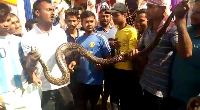 মিৰ্জা, সংবাদ ৩৬৫, ২৫ নৱেম্বৰ: দক্ষিণ কামৰূপৰ অতি পুৰনি ৰাস হিচাপে চিহ্নিত ৰামপুৰ ৰাস মহোৎসৱত উদ্ধাৰ হয় এটা জীৱন্ত অজগৰ । ২২ নবেম্বৰৰ পৰা ১১ দিনীয়াকৈ চলি থকা ৰামপুৰৰ ৰাস মহোৎসৱৰ বাকৰিত মৃন্ময় মুৰ্তিৰ কাষত দেওবাৰে পুৱাই দেখা গ’ল এডাল প্ৰকাণ্ড অজগৰ । উদ্যোক্তাসকলে অজগৰডাল প্ৰত্যক্ষ কৰাৰ লগে লগে সৃষ্টি হয় এক তীব্ৰ চাঞ্চল্যৰ । ভগৱান শ্ৰী কৃষ্ণৰ লীলা-মালাৰে ভৰপুৰ এই ৰাস মহোৎসৱত অজগৰ উদ্ধাৰ হোৱা ঘটনাই এক আধ্যাত্মিক তথা অলৌকীক পৰিৱেশে বিৰাজ কৰে । ভগৱান শ্ৰী কৃষ্ণৰ এই লীলাৰ ফলত এইদৰে অজগৰ উদ্ধাৰ হোৱা বুলি ধাৰনা কৰি লোকসকলে পিছত অজগৰডাল বন বিভাগক গতাই দিয়ে ।