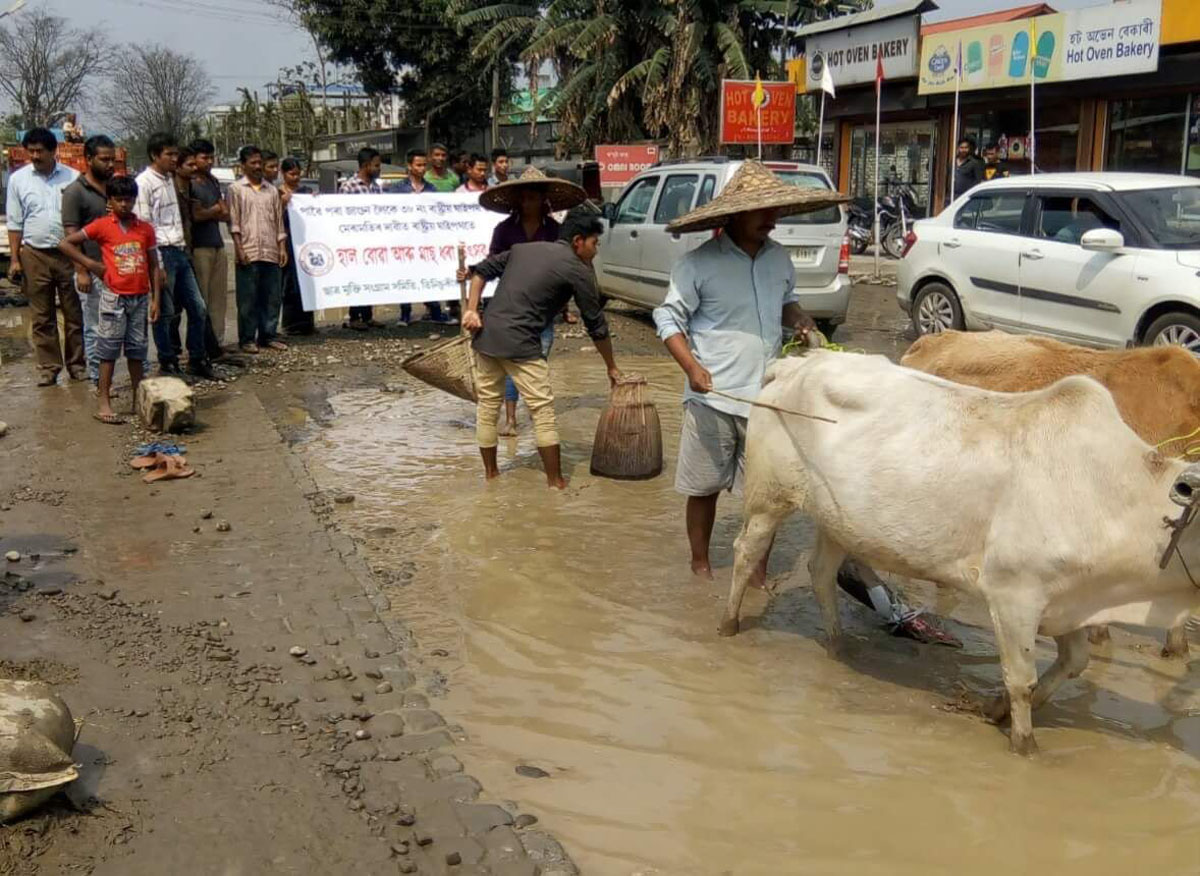 মাৰ্ঘেৰিটাৰ পৰা ৰবিন শৰ্মা, সংবাদ ৩৬৫, ১৭ মাৰ্চ: ৰাজ্যৰ বিজেপি চৰকাৰখনে যিমানেই উন্নয়নৰ শ্লোগান নিদিয়ক কিয় অসমৰ ৰাষ্ট্ৰীয় ঘাইপথসমূহৰ অৱস্থা দেখিলেই উন্নয়নৰ ফোপোলাস্বৰূপ ওলাই পৰে। তিনিচুকীয়া জিলাৰ ৩৮ নম্বৰ ৰাষ্ট্ৰীয় ঘাইপথছোৱা যোৱা দুবছৰে ধৰি পাৱৈৰ পৰা জাগুনলৈকে সম্পূৰ্ণৰুপে বিধস্ত হৈ পৰাৰ পিছতো ৰাজ্য চৰকাৰখনে পথছোৱা নিৰ্মাণৰ ক্ষেত্ৰত কোনোধৰণৰ পদক্ষেপ লোৱা পৰিলক্ষিত নহল। অসমৰ অত্যন্ত ব্যস্ততাপূৰ্ণ কয়লানগৰী চহৰ মাৰ্ঘেৰিটাৰ বিধস্ত হৈ থকাৰ এই পথছোৱা নিৰ্মাণৰ বাবে ছাত্ৰ মুক্তি সংগ্ৰাম সমিতিৰ মাৰ্ঘেৰিটা আঞ্চলিক সমিতিয়ে চৰকাৰ কেবাবাৰো স্মাৰকপত্ৰ প্ৰেৰণ কৰিছে যদিও আজি পৰ্যন্ত বিজেপি চৰকাৰে কোনো ধৰণৰ ব্যৱস্থা গ্ৰহণ নকৰিলে। বিজেপি চৰকাৰে জনতাৰ মূল সমস্যাসমূহ সমাধান কৰাৰ পৰিৱৰ্তে জনতাক উৎসৱ পাৰ্বণ অনুষ্ঠিত কৰিহে ব্যস্ত ৰাখিব বিচাৰে। উন্নয়নমূলক কামৰ প্ৰতি চৰকাৰৰ দৃষ্টি আকৰ্ষণ কৰিবলৈ শনিবাৰে ছাত্ৰ মুক্তি সংগ্ৰাম সমিতিৰ মাৰ্ঘেৰিটা আঞ্চলিক সমিতিয়ে মাৰ্ঘেৰিটাবাসী ৰাইজৰ সহযোগত বিধস্ত এই ৰাষ্ট্ৰীয় ঘাইপথত হাল বোৱা আৰু মাছ ধৰা উৎসৱ উদযাপন কৰে। স্থানীয় ৰাইজ আৰু ছাত্ৰ মুক্তি সংগ্ৰাম সমিতিৰ মাৰ্ঘেৰিটা আঞ্চলিক সমিতিয়ে মুখ্যমন্ত্ৰী সৰ্বানন্দ সোনোৱাললৈ এখনি স্মাৰকপত্ৰও প্ৰেৰণ কৰে আৰু সকীয়াই দিয়ে যে অতি শীঘ্ৰে যদি ৩৮ নম্বৰ ৰাষ্ট্ৰীয় ঘাইপথছোৱা মেৰামতি নকৰে তেনেহলে বহাগ বিহুৰ পিছতেই পথছোৱাত ভূই ৰোৱা উৎসৱ উদযাপন কৰিব।