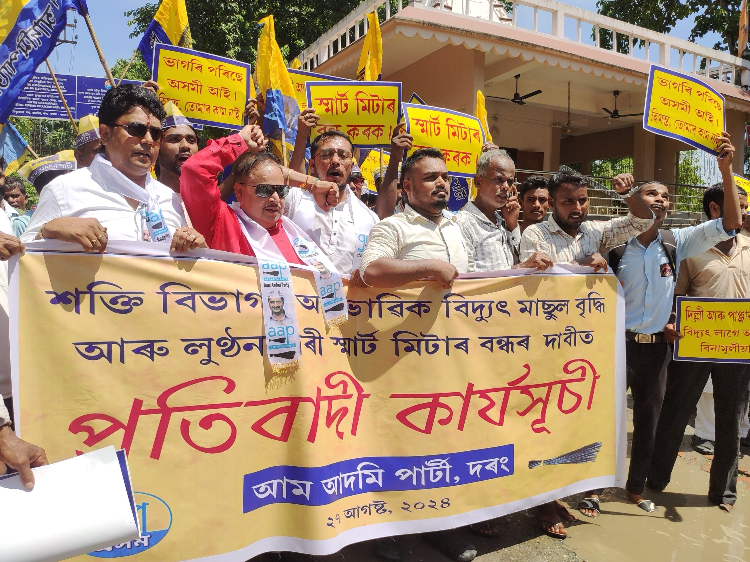 প্ৰতিবাদী কাৰ্য্যসূচীৰ নেতৃত্ব দিয়ে দৰং জিলা আম আদমি পাৰ্টীৰ আহ্বায়ক আখতাৰুল ইছলাম হাজৰিকাই। দলৰ আহ্বায়ক আখতাৰুল ইছলাম হাজৰিকাই মুখ্যমন্ত্ৰী ড০ হিমন্ত বিশ্ব শৰ্মাৰ চৰকাৰক পুঁজিপতি শ্ৰেণীৰ স্বাৰ্থৰ চিন্তা কৰিবলৈ এৰি ৰাজ্যখনৰ দৰিদ্ৰ ৰাইজৰ স্বাৰ্থত জনকল্যাণকামী আঁচনি প্ৰৱৰ্তন কৰিবলৈ আহ্বান জনায়। কাৰ্যসূচীত আপৰ আন এগৰাকী নেতা নীলমণি শইকীয়াই প্ৰিপেইড স্মাৰ্ট মিটাৰে সৃষ্টি কৰা সমস্যা সন্দৰ্ভত বক্তব্য দাঙি ধৰে।