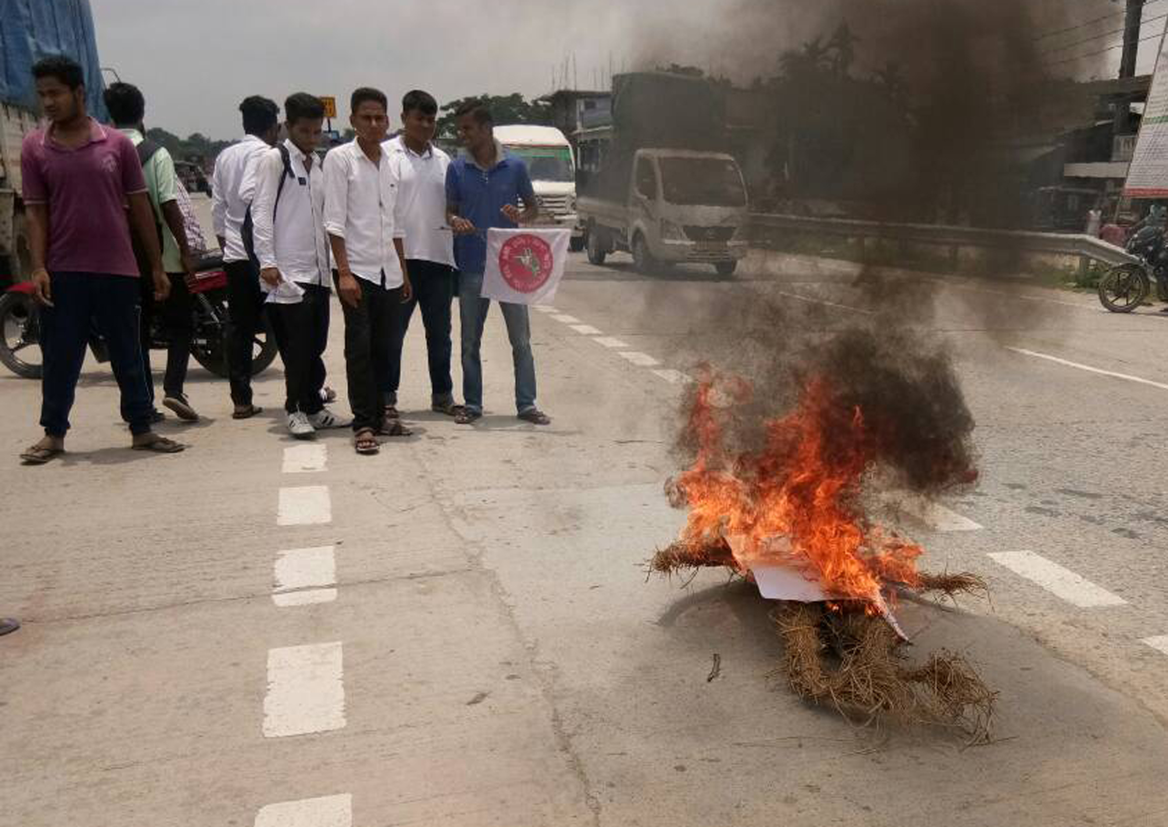 ৰহা, ২৩ জুনঃ ৰেলৱে বিভাগত নিযুক্তিৰ ক্ষেত্ৰত থলুৱাক বঞ্চনা কৰাৰ ঘটনাক লৈ ৰহা নতুন চাৰিআলিত সদৌ অসম ছাত্ৰ সন্থাৰ ৰহা আঞ্চলিক সমিতিৰ শতাধিক সদস্যই উত্তাল প্ৰতিবাদ সাব্যস্ত কৰে। উল্লেখ্য যে, উত্তৰ পূব সীমান্ত ৰেলৱেত তৃতীয় বৰ্গৰ কমাৰ্চিয়েল এপ্ৰেনটিচ পদৰ কাৰণে গুৱাহাটীৰ ৰেলৱে নিযুক্তি বৰ্ডে প্ৰকাশ কৰা ৫১ জনীয়া তালিকাত এজনো থলুৱা প্ৰাৰ্থী নাম নথকাৰ অভিযোগ কৰিছিল ছাত্ৰ সংগঠনটোৱে৷ নিযুক্তিৰ ক্ষেত্ৰত ৰেলৱে বিভাগে ৰাজ্যৰ থলুৱা প্ৰাৰ্থীক এনেদৰে বঞ্চনা কৰা কাৰ্যক সংগঠনটোৱে কঠোৰ ভাষাৰে সমালোচনা কৰে৷ বিশেষকৈ অসমৰ সাংসদ ৰাজেন গোঁহাই ৰেল ৰাজ্যৰ মন্ত্ৰীৰ দায়িত্ব থকাৰ পিছতো ৰেলৱে বিভাগত ৰাজ্যৰ থলুৱা প্ৰাৰ্থীক বঞ্চনা কৰা কাৰ্যত ছাত্ৰ সংগঠনটোৱে তীব্ৰ আশ্চৰ্য্য কৰে৷ কেন্দ্ৰ আৰু ৰাজ্যত বিজেপি চৰকাৰ থকাৰ পিছতো অসম তথা উত্তৰ-পূৰ্বাঞ্চলৰ যুৱক-যুৱতীক এনেদৰে বঞ্চিত কৰি বহিঃৰাজ্যৰ প্ৰাৰ্থীক নিযুক্তি দিয়া কাৰ্যই কেন্দ্ৰীয় চৰকাৰৰ অসমৰ প্ৰতি থকা অৱহেলা মনোভাৱক পুনৰবাৰ প্ৰতিপন্ন কৰিছে বুলি অভিযোগ কৰি সংগঠনটোৱে ৰহাৰ ৰাজপথত উত্তাল প্ৰতিবাদ সাব্যস্ত কৰে৷ সংগঠনটোৱে চৰকাৰ বিৰোধী শ্ল’গানেৰে চৌদিশ মুখৰিত কৰি ৰহাৰ ৰাজপথত ৰেল ৰাজ্য মন্ত্ৰী ৰাজেন গোঁহাইৰ পুত্তলিকা দাহ কৰে৷ লগতে ৰেলৱে বিভাগৰ তৃতীয় আৰু চতুৰ্থ বৰ্গৰ পদ থলুৱা লোকৰ কাৰণে সংৰক্ষণ কৰি শীঘ্ৰে নিযুক্তিৰ প্ৰক্ৰিয়া পুনৰ আৰম্ভ কৰিবলৈ চৰকাৰৰ লগতে ৰেলৱে বিভাগক দাবী জনায়৷ অন্যথা অনাগত দিনত ব্যাপক আন্দোলন গঢ়ি তোলাৰ হুংকাৰ দিয়ে৷